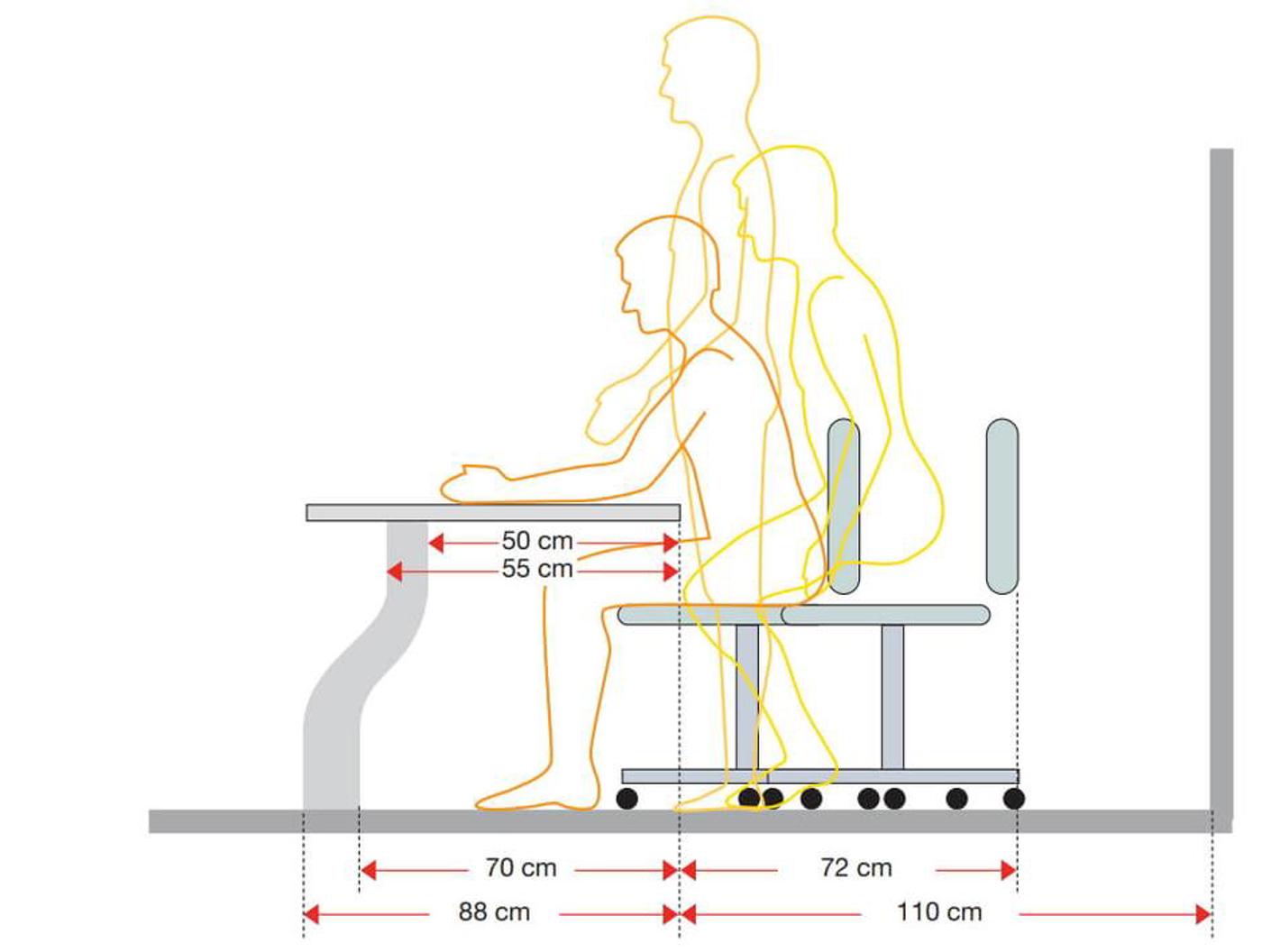 For arbejdspladser ved skærm er det væsentligt, at borddybden er tilstrækkelig til, at skærmen kan stå i optimal afstand fra øjnene, som er 50-70 cm.