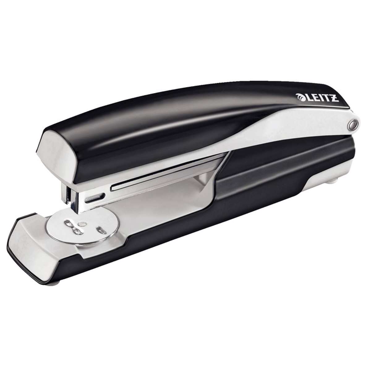 Robust og stabil metalhæftemaskine til hverdagen opgaver. Hæfter op til 40 ark (80 g. papir). Bruger Leitz Power Performance P3 hæfteklammer, 24/8 eller 26/8. En hæfteklammepakke med 200 stk 24/8 klammer er inkluderet. Super praktisk med integreret hæfteklammefjerner. Patenteret Direct Impact Technology sikrer perfekt hæftning hver gang. Minimal kraftanvendelse. Ved drejning af hæfteskålen skiftes mellem åben og lukket hæftning. Åbnes hæftemaskinen 180° kan den bruges til nålehæftning. 10 års garanti ved brug af Leitz hæfteklammer.
