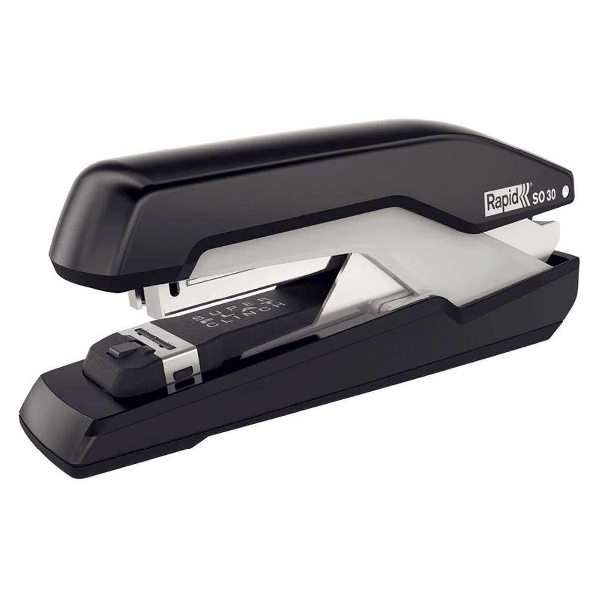 Revolutionerende fullstrip hæftemaskine med patenteret Omnipress teknologi, hvor der kan trykkes på ethvert sted for at få fuld effekt ved hæftning, hvad enten du hæfter ved skrivebordet eller i hånden. Hæftemaskinen er desuden udstyret med den unikke SuperFlatClinch teknologi, der reducerer papirstakke med 40%. Den robuste og effektive clipsemaskine hæfter op til 30 ark (80 g. papir). Topåbning af klammekassette giver let udskiftning af hæfteklammer. Til Rapid Omnipress 30 ark specialdesignede klammer (391970). 5 års garanti ved brug af Rapid hæfteklammer.