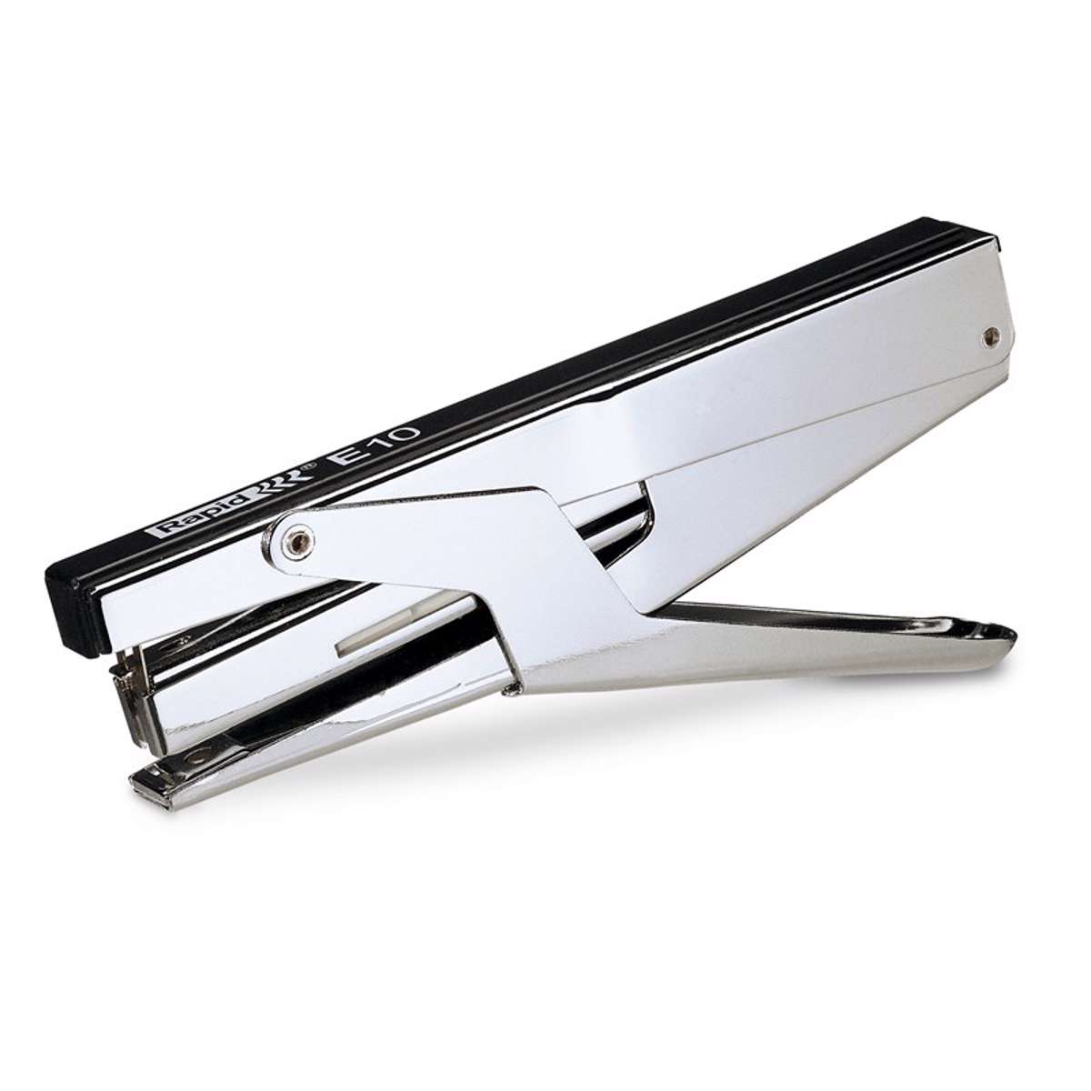 - Hurtighæftningstang E10 med toppåfyldningsmekanisme til åben og lukket hæftning med automatisk hæftning af hæfteklammer