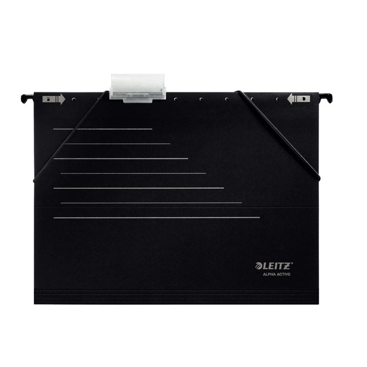 Leitz innovative hængemappe i plast med elastik til A4 fungerer både i arkivet og på farten. Mappen har kroge og fane med indstik, der kan skubbes ind og ud efter behov. Det betyder at man nemt kan tage mappen ud af arkivet og den med til møde. På farten holder elastiklukningen indholdet på plads. Skinne, hvor kroge kan skubbes ind, gør det lettere at tage hængemappen med. Etiketholder kan skubbes ned men stadig være synlig. Inkl. papirindstik der måler 21 mm (H) x 60 mm (B).