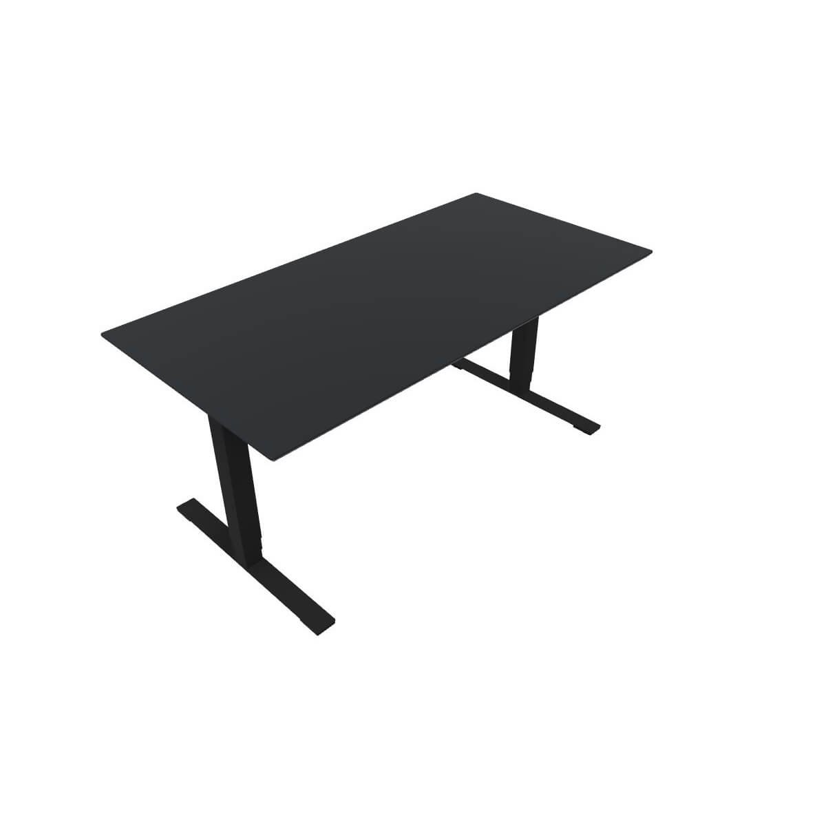 Bordet har bordplade i antracitgrå laminat og sort stel.