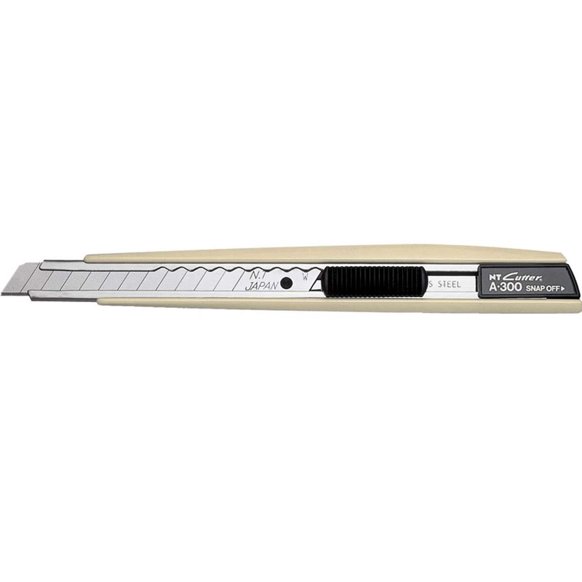 Den populære hobbykniv A-300 til professionelt brug. Hurtig snaplås holder bladet på plads. Solid og let stålforstærket aluminium i Japansk højkvalitet. Kniven på 9 mm er en hobbykniv, der har uendelige anvendelsesmuligheder og er uundværlig i virksomheder, der har åbner og pakker emballage, og i hjem, der bygger om. Den er velegnet til at skære i alle materialer, fx gips, pap, plastik og alle slags papir.