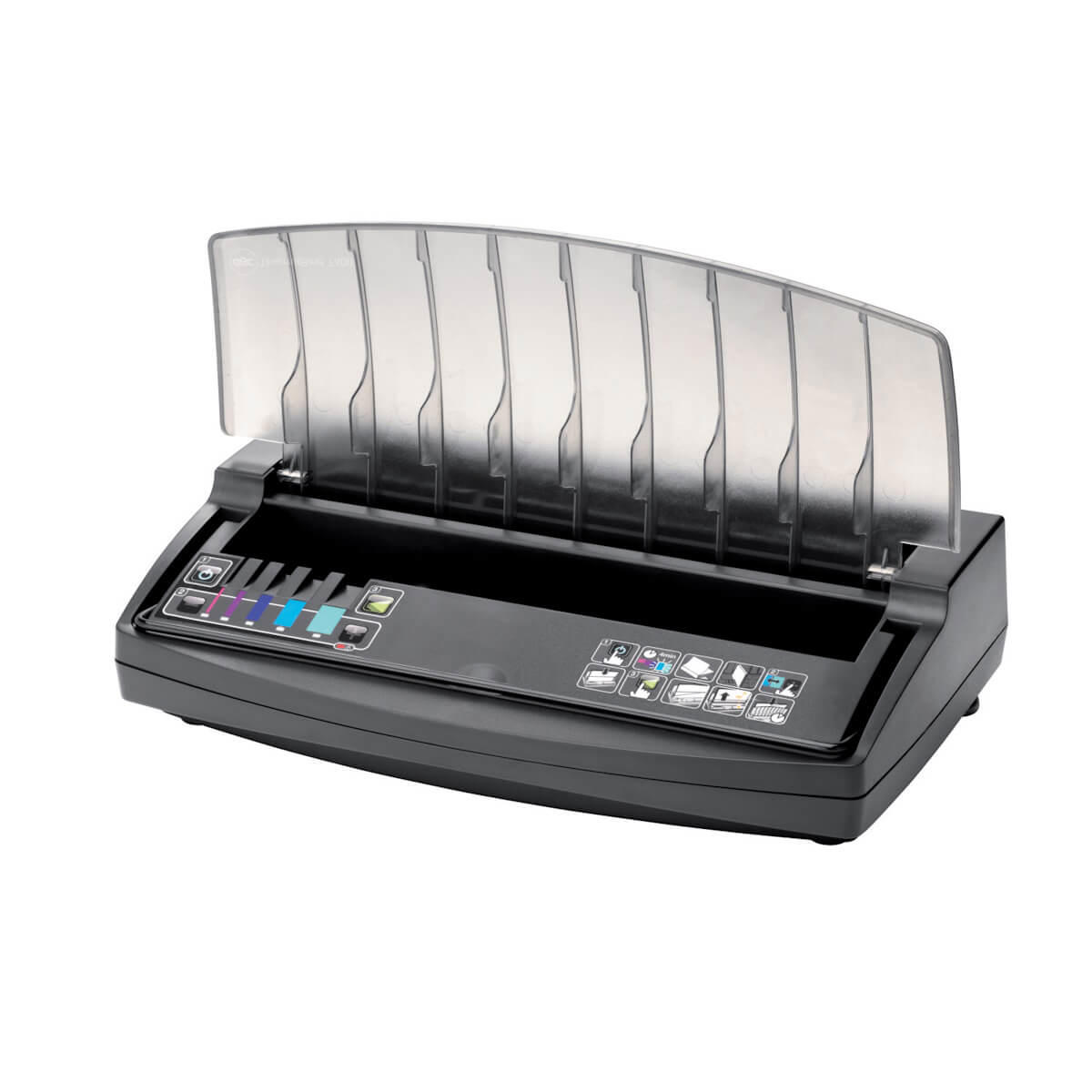 - Dokumentstøtte hjælper ved mange indbindinger; integreret afkølingsbakke så indbundne dokumenter kan stå og blive afkølet, og der er ikke forvirring mellem dokumenter under produktion og færdige dokumenter