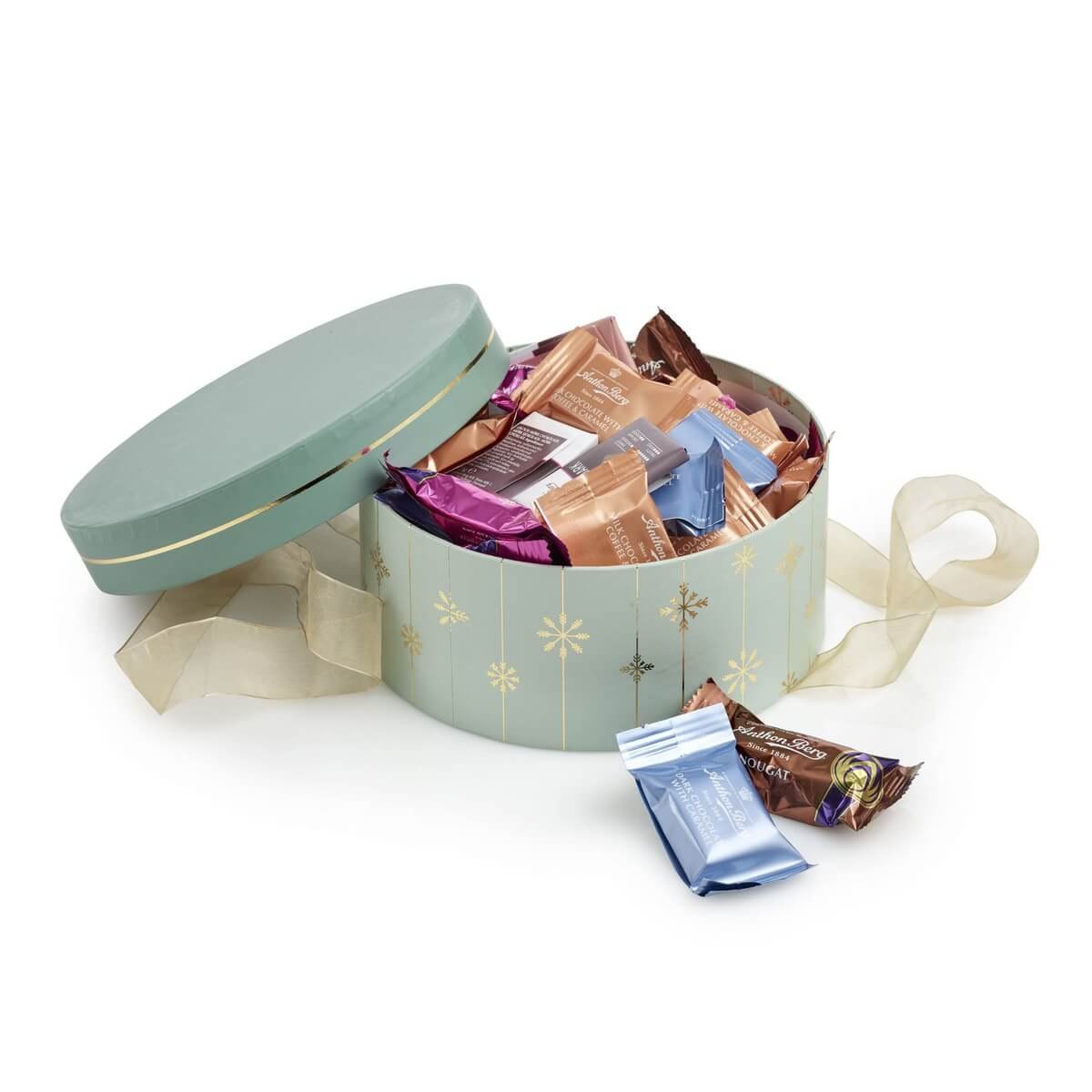 Julegave 2025 Hatteæske Mint Snefnug, Anthon Berg 500g