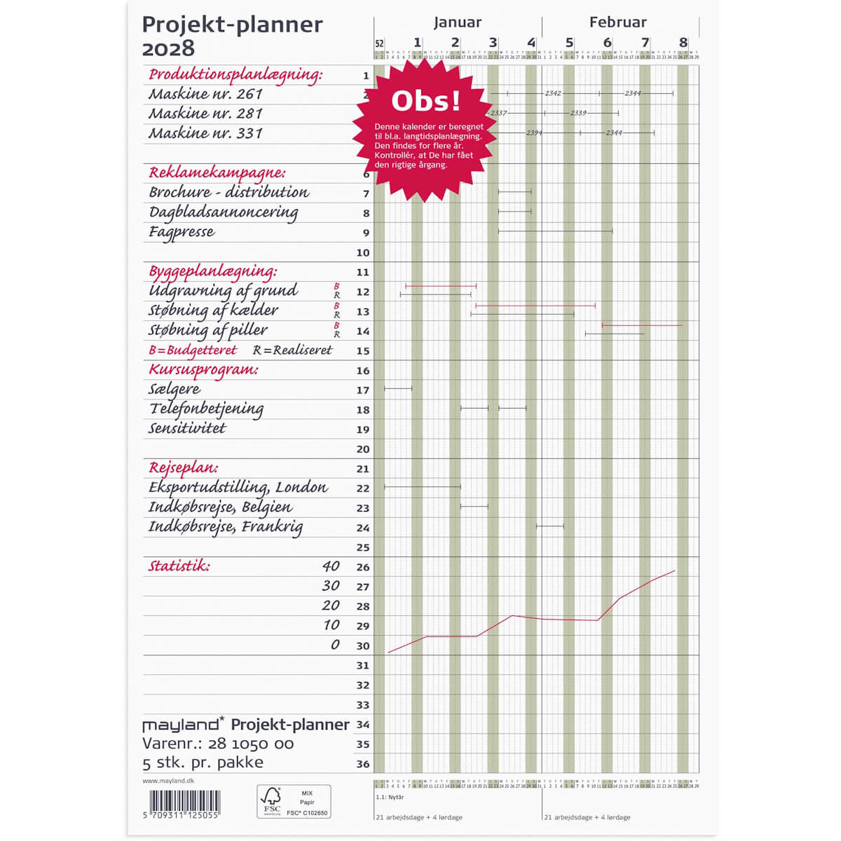 Projekt Planner for 2028. Specielt anvendelig til produktionsplanlægning, kursusprogrammer, reklamekampagner, rejseplaner m.m. Leveres foldet til A4.