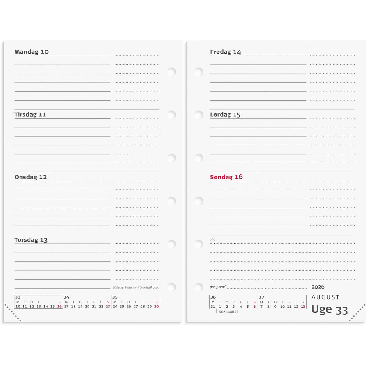 System Mini ugekalender i tværformat - REFILL - 8 x 12,6 cm - Mayland kalender 2026