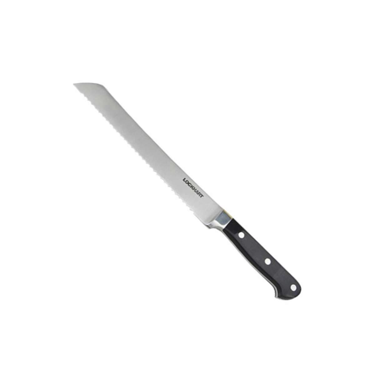 Lækker køkkenkniv fra Lockhardt med 23 cm klinge i rustfrit stål og håndtag i sort formet plast, der sikrer et godt greb. Lockhardt er køkkenudstyr for professionelle, velegnet til café, catering og kantine.