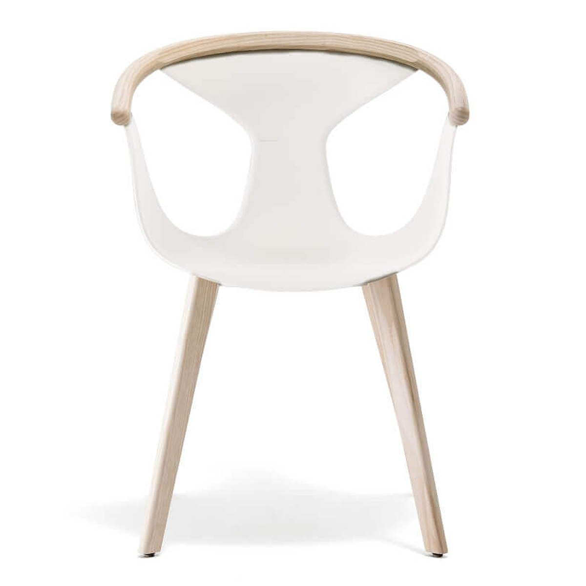 Fox er en elegant konference-stol med armlæn og ben i bleget ask og hvid polypropylen-skal.