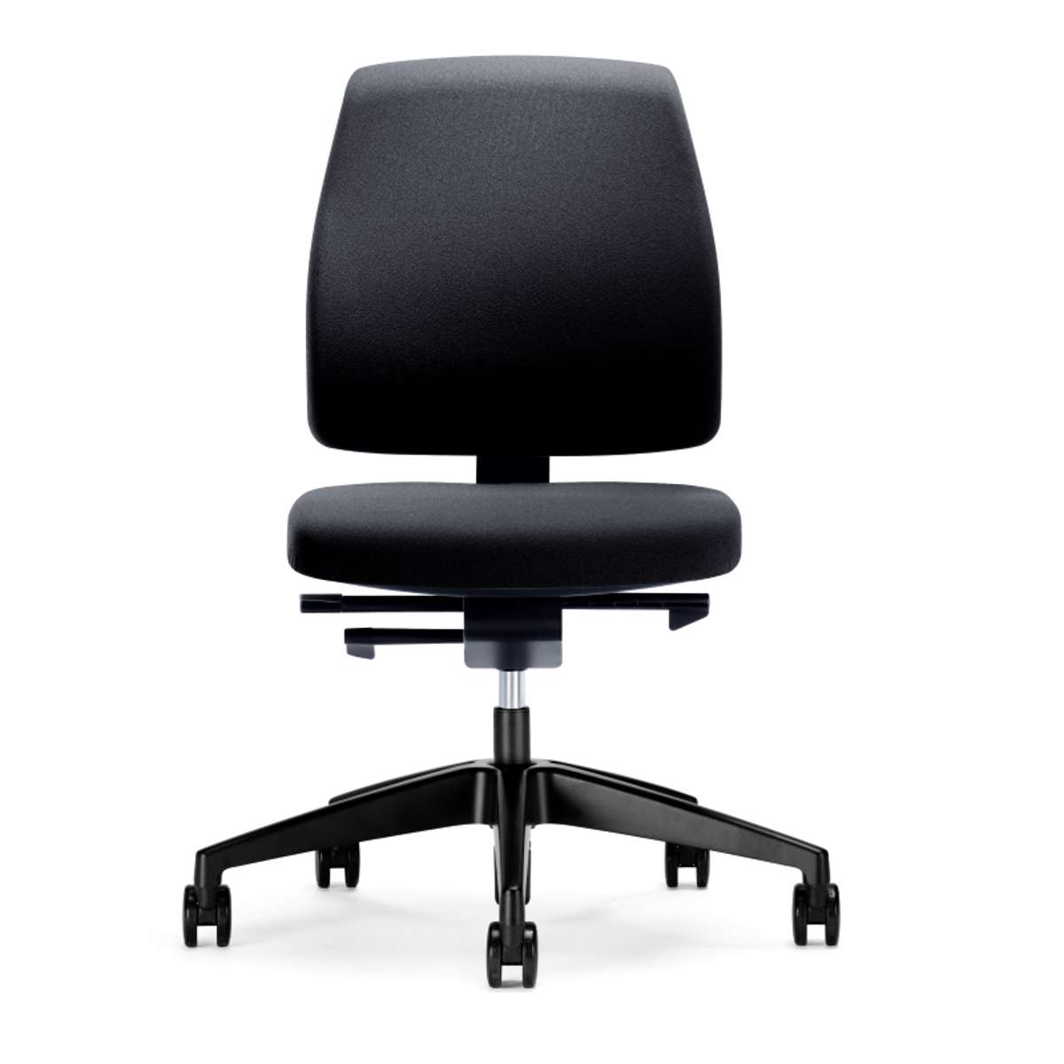 En kontorstol med synkron-mekanisme og vægt-justering, samt højdejustering af sædet. Højdejustering af ryg-støtte. Rygstøtte højde 530 mm.