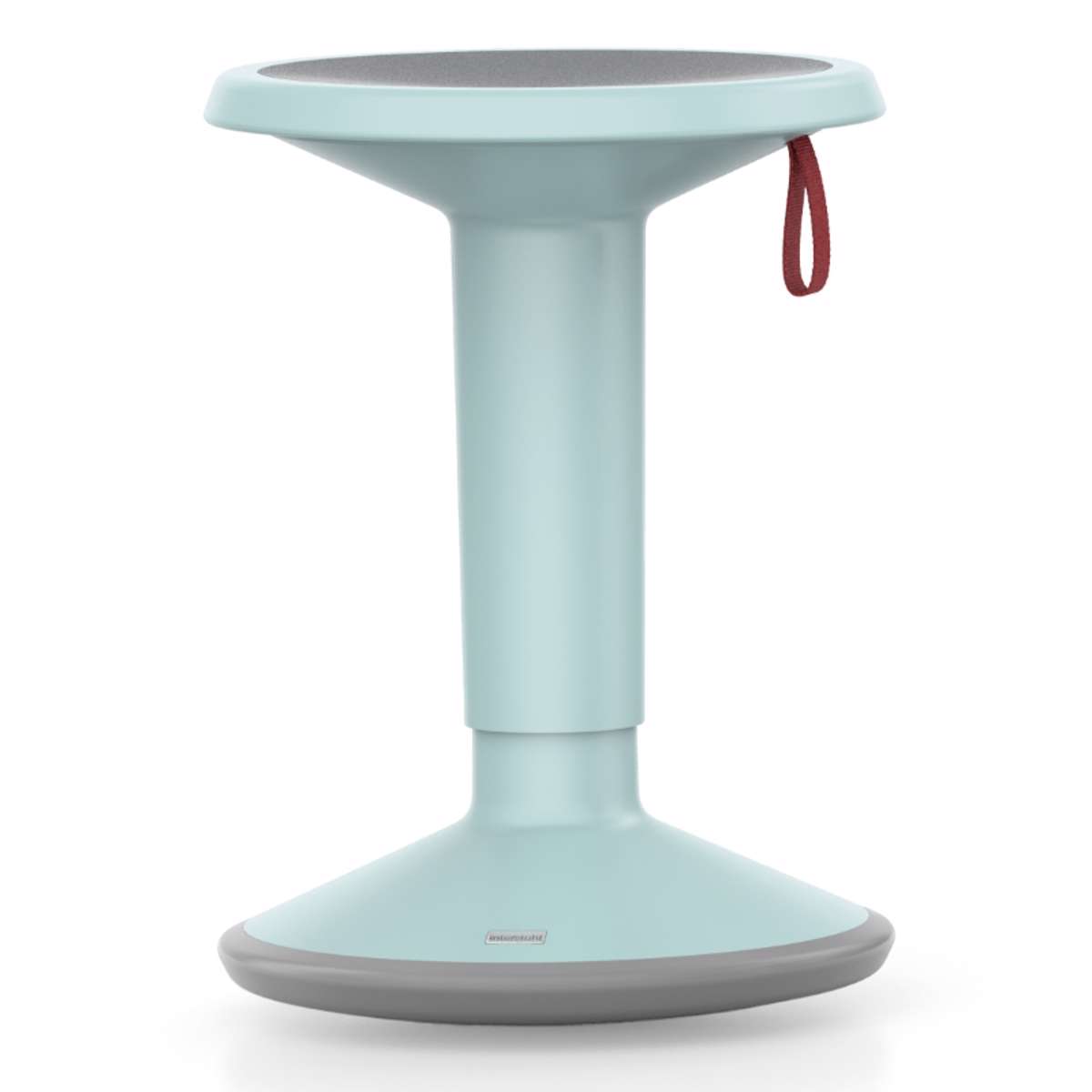 Den iøjefaldende røde strop spiller en dobbelt rolle som justerings-håndtag og design-kendetegn, der fremhæver Up-is-1-taburettens afslappede funktionalitet.
