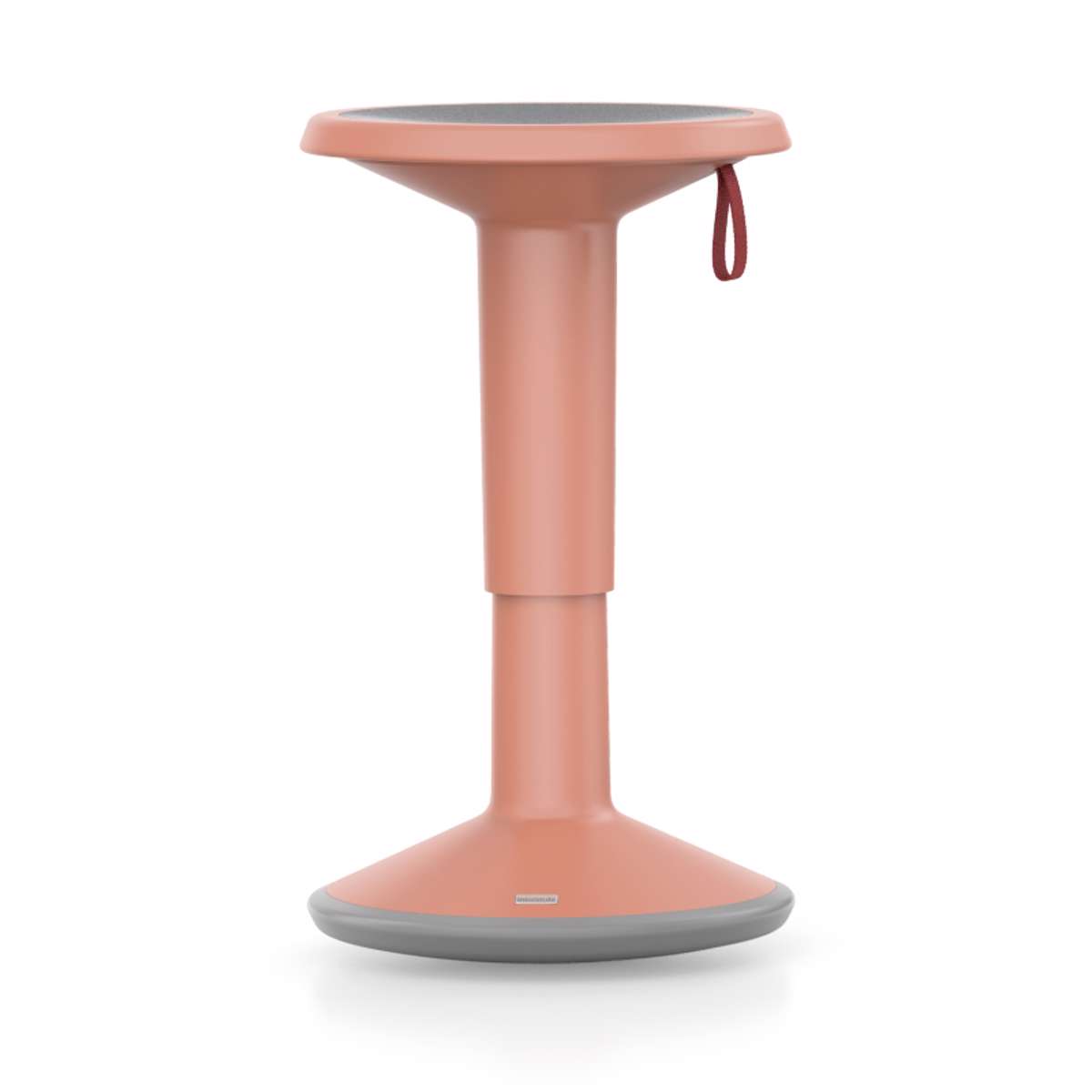 Den iøjefaldende røde strop spiller en dobbelt rolle som justerings-håndtag og design-kendetegn, der fremhæver Up-is-1-taburettens afslappede funktionalitet.