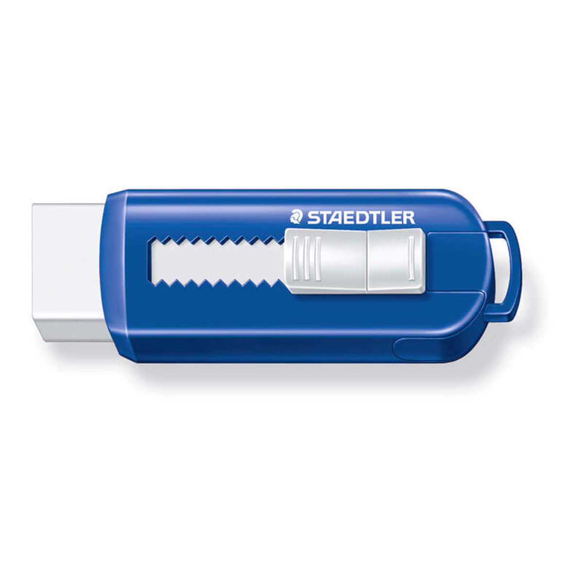 Viskelæder Staedtler m/ skubfunktion hvid/blå