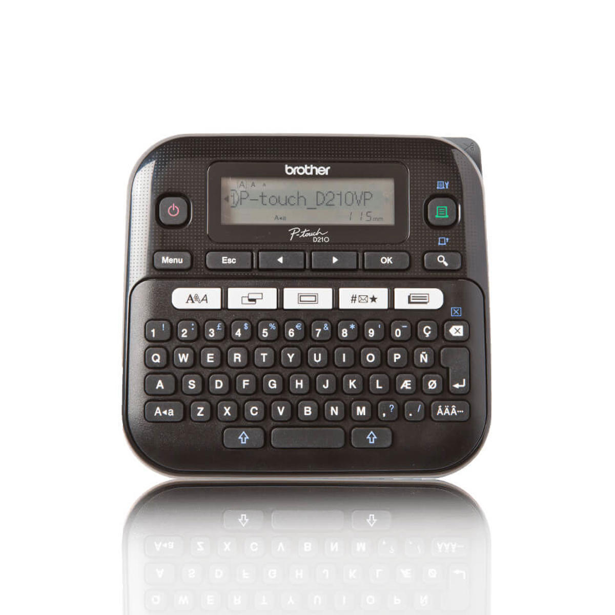 - PT-D210VP er en kompakt labelprinter, der er hurtig og meget brugervenlig. Du kan skabe dekorative labels med varierende mønstre ved hjælp af de indbyggede skabeloner og det let-læselige grafiske display.