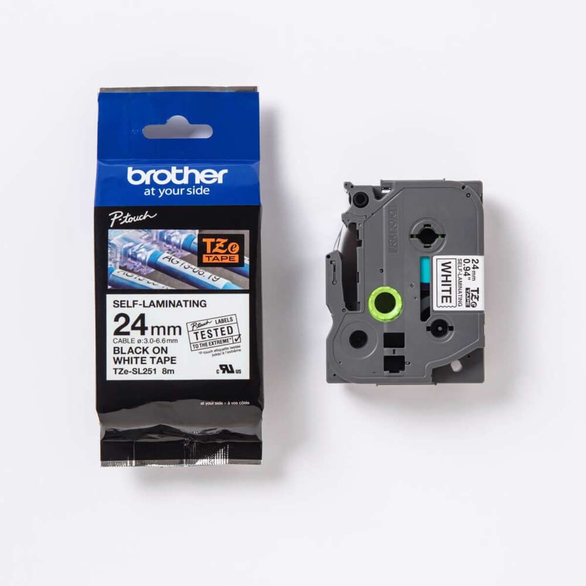 TZe-SL selvlaminerende tape sort på hvid 24 mm
