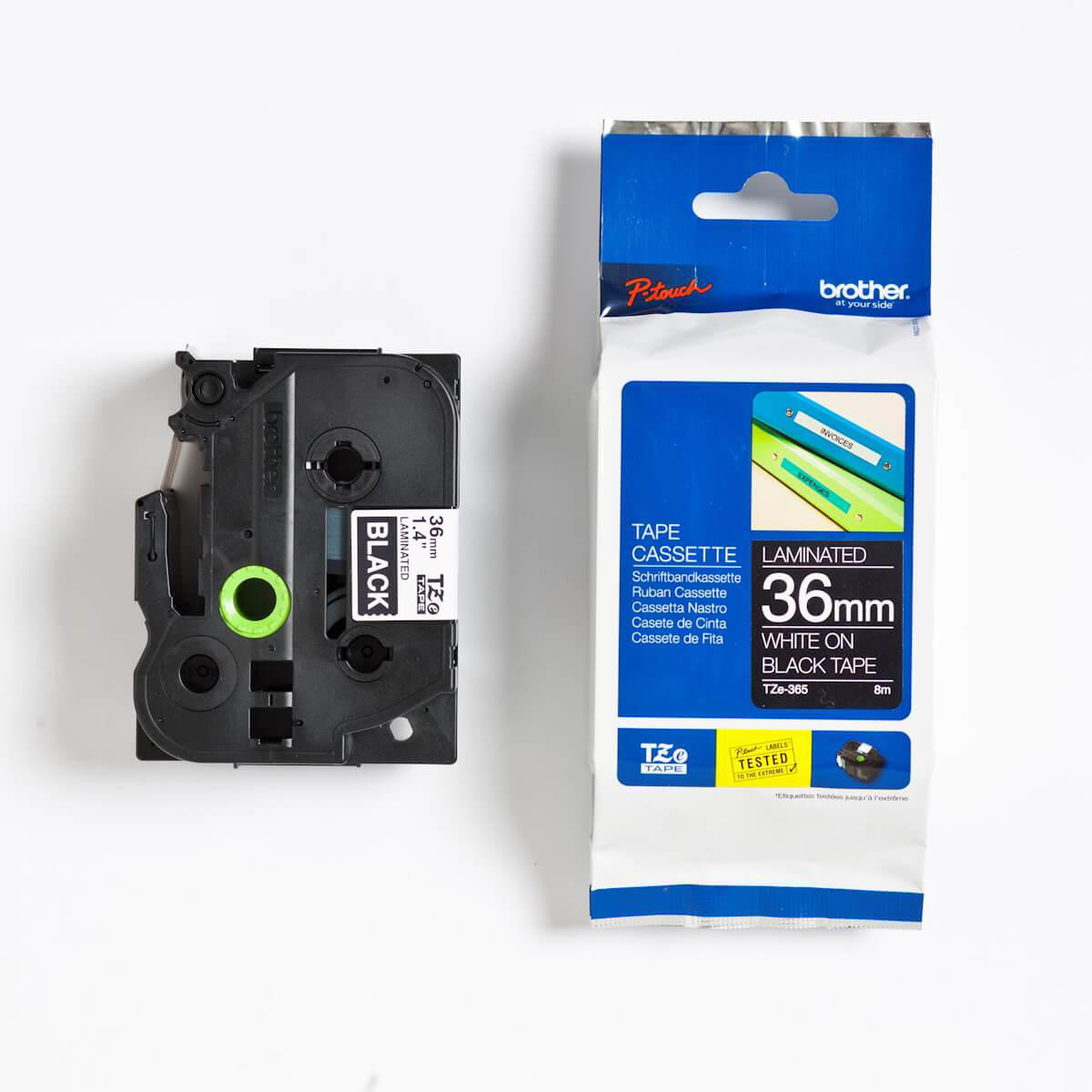 - Brother TZe365 tape er det sikre valg for enhver, der har brug for robuste labels, der bevarer deres kvalitet over tid og sikrer en professionel opmærkning.