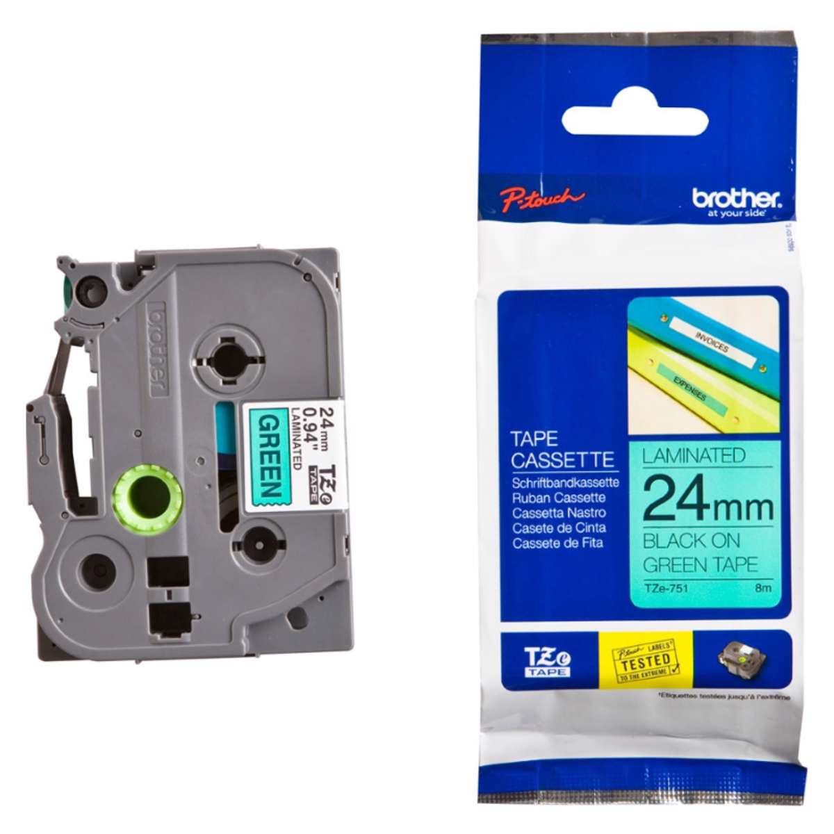 Labeltape Brother TZe 751. Prægetape fra Brother, der tåler næsten hvad som helst; fugt, kulde (ned til -50°C ), varme, stærke opløsningsmidler som syre samt mange andre kemikalier, olie, sollys og ikke mindst kraftig slid. Passer til P-touch TZe-tape labelmaskiner. TZe751