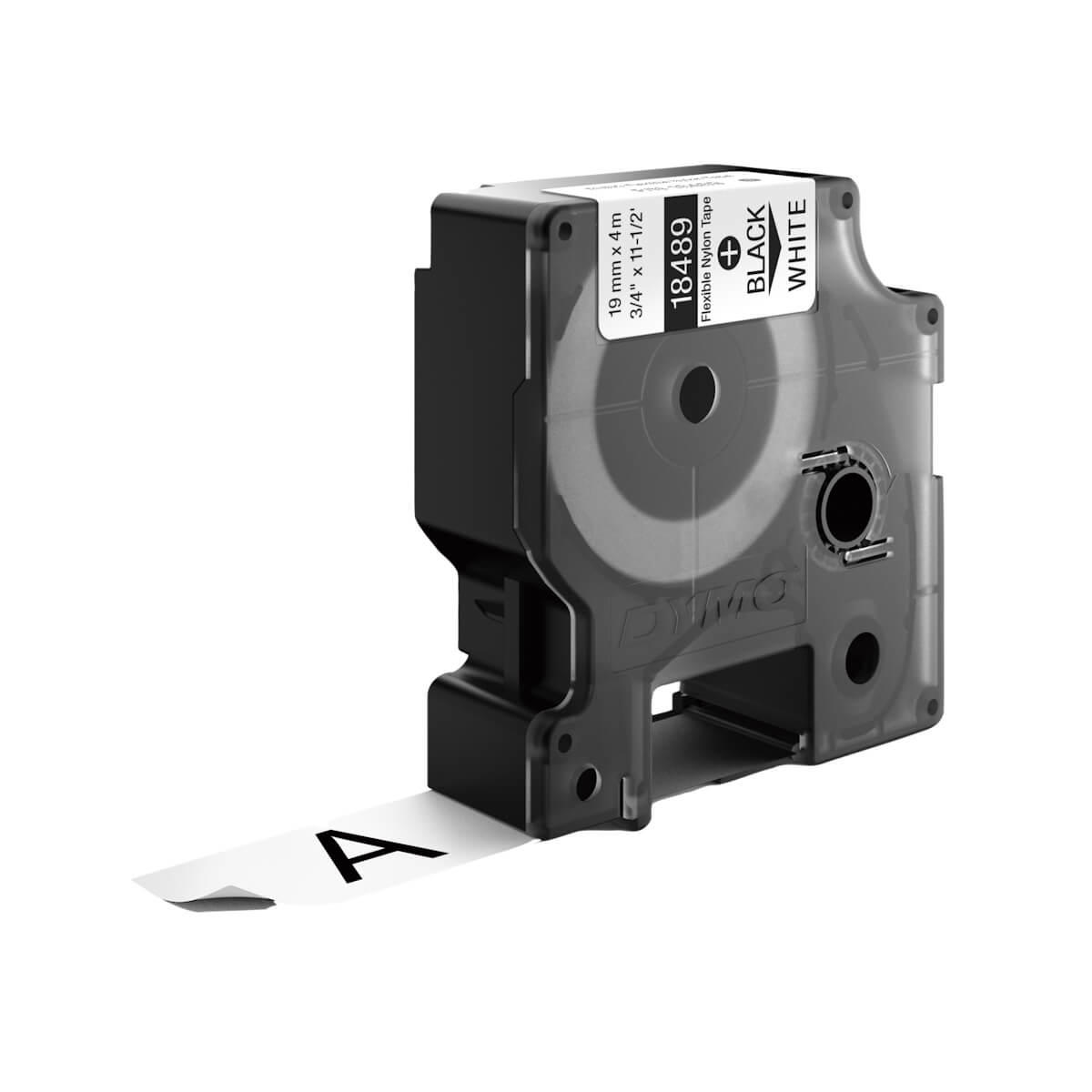 DYMO Rhino fleksibel nylon, 19mm x 3,5m, sort på hvid