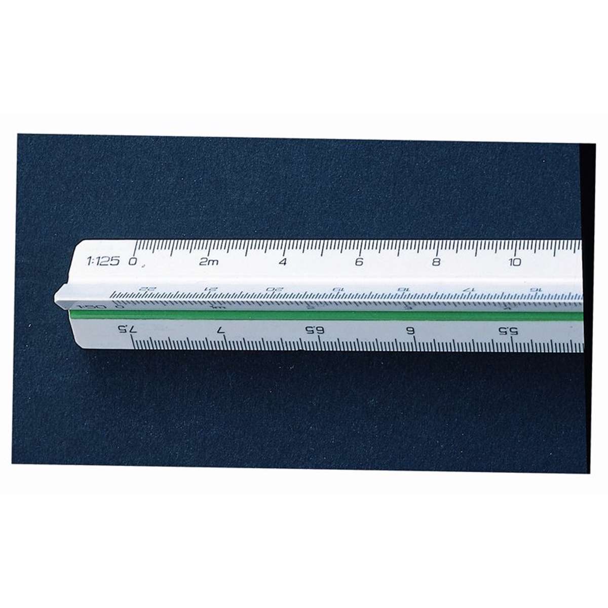 Målestokslineal med seks forskellige skalaer. Noter i 2 farver. Leveres i plastetui.