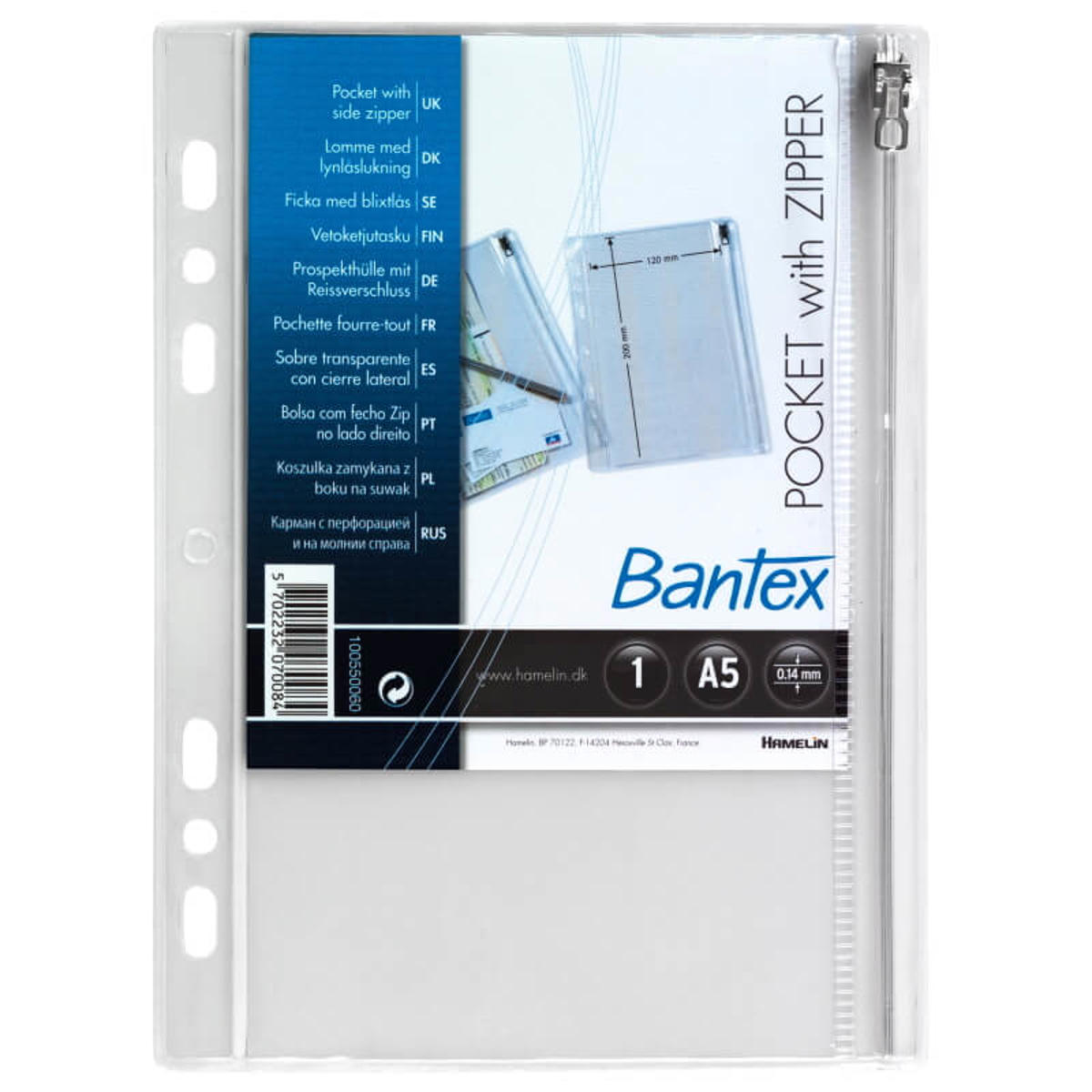 Bantex lynlåslomme i kraftig kvalitet med huller til isætning i ringbind og lynlås placeret i højre side af lommen. Lommens ydre mål svarer til A5-format, hvilket gør plastlommen idéel til opbevaring af løsdele på såvel kontoret som i hjemmet. Plastiklommerne fra Bantex har en rigtig god kvalitet, der gør lommerne perfekte til daglig brug.