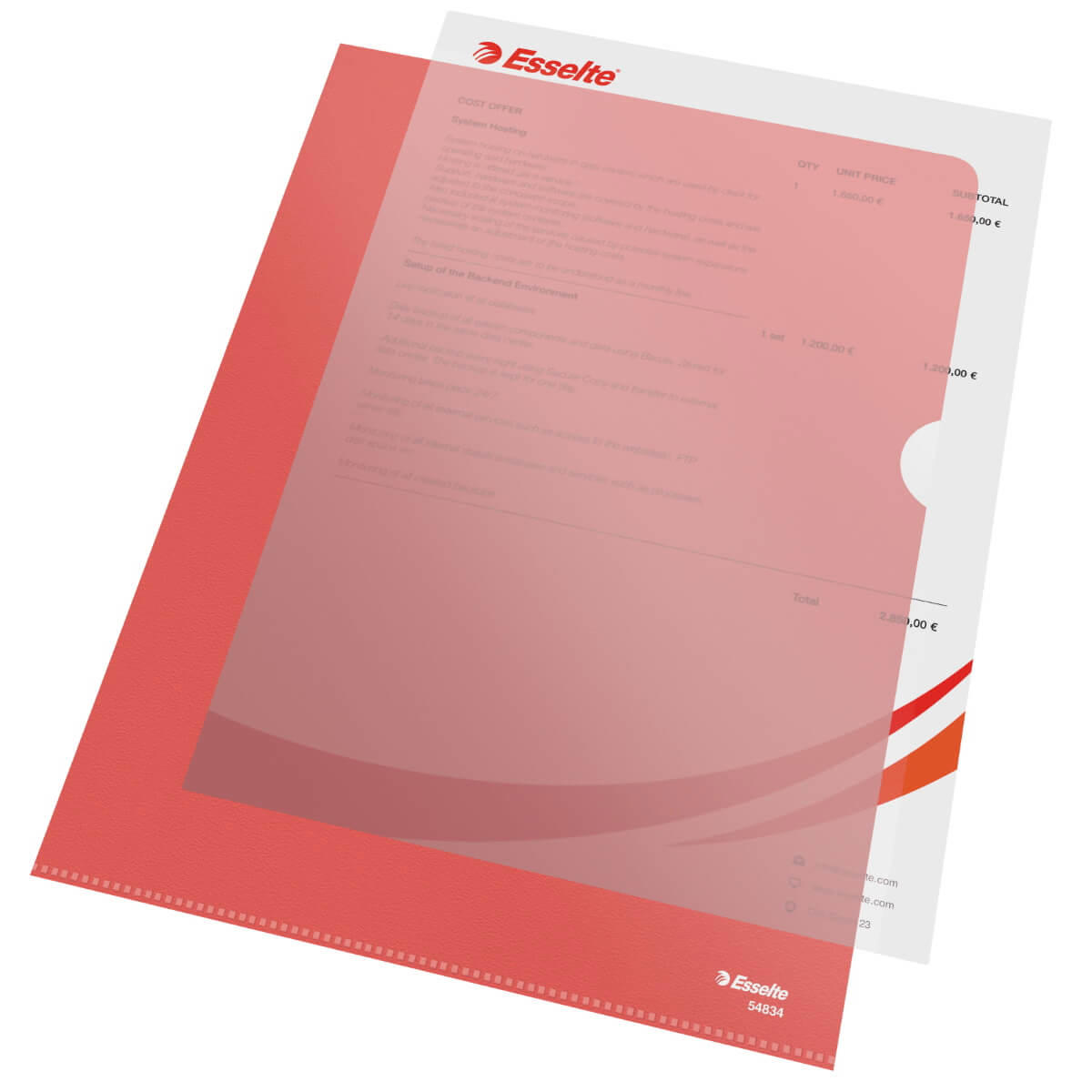 Refleksfrit og præget plastomslag i A4 format fra Esselte i rød farve, 0,115 mm - 100 stk./pk.