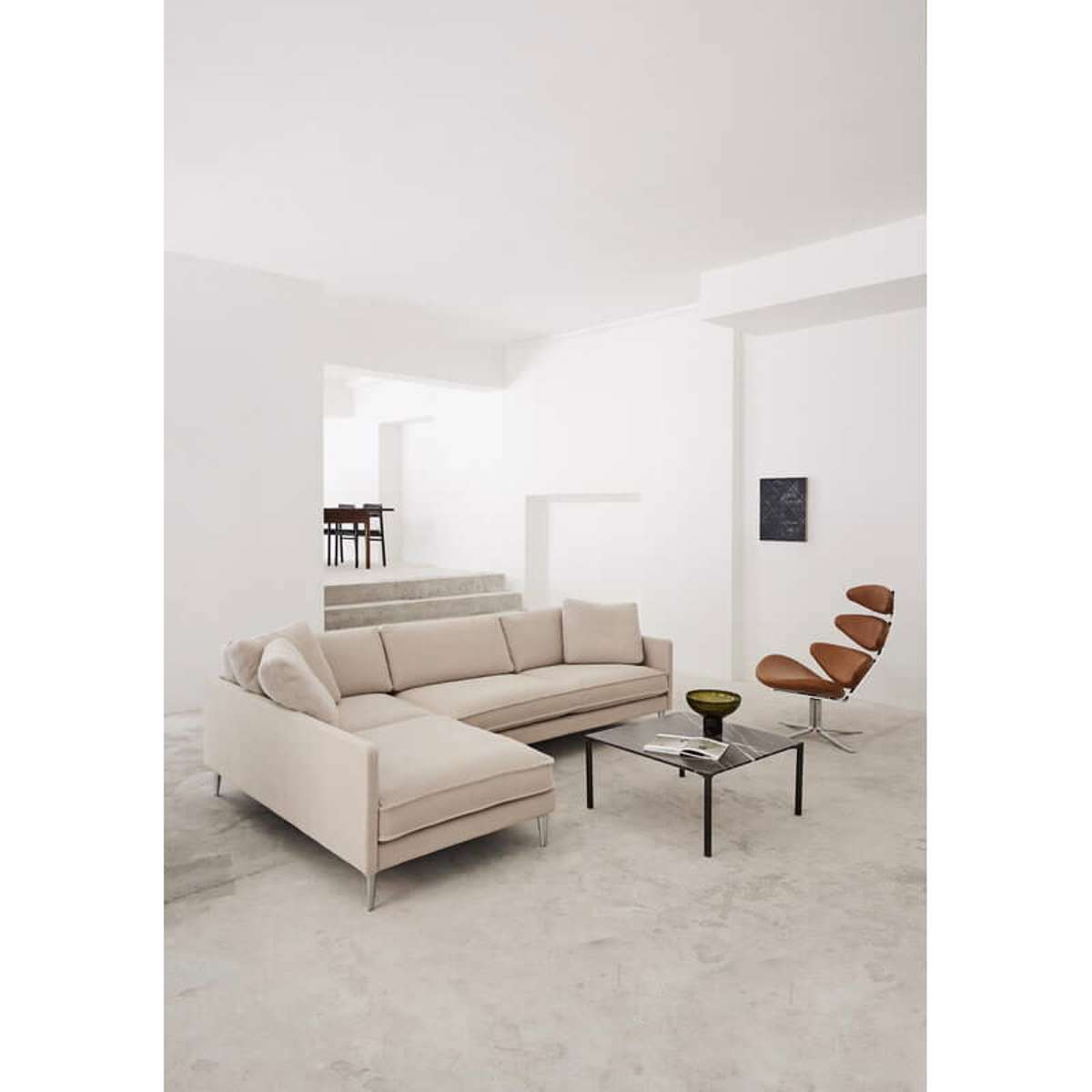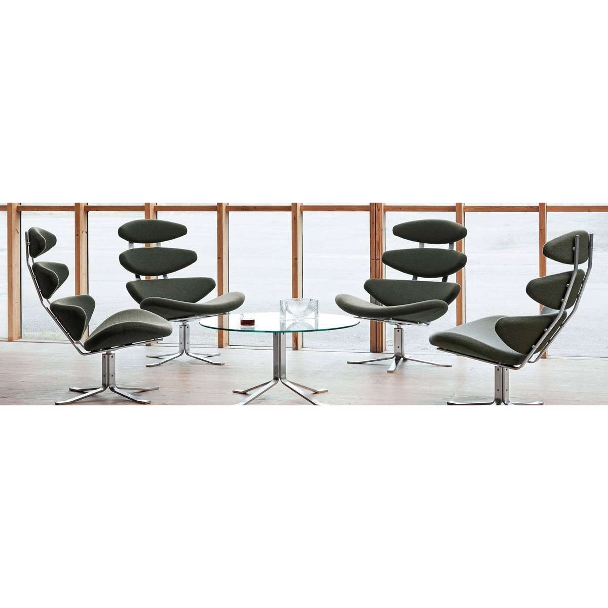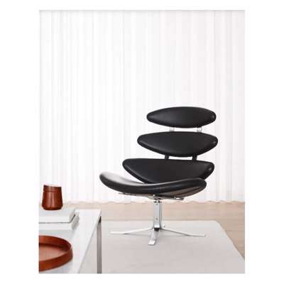 Skulpturel, iøjnefaldende og original - Corona-stolen er et studie i geometri. Et konsekvent design med elliptisk formet polstrede sædepuder der bliver mindre og mindre opefter. Et spændende tilgangsmåde, der udfordrer den konventionelle måde at sidde på, hvilket også har ført til at Corona er blevet et eftertragtet design ikon over hele verden.