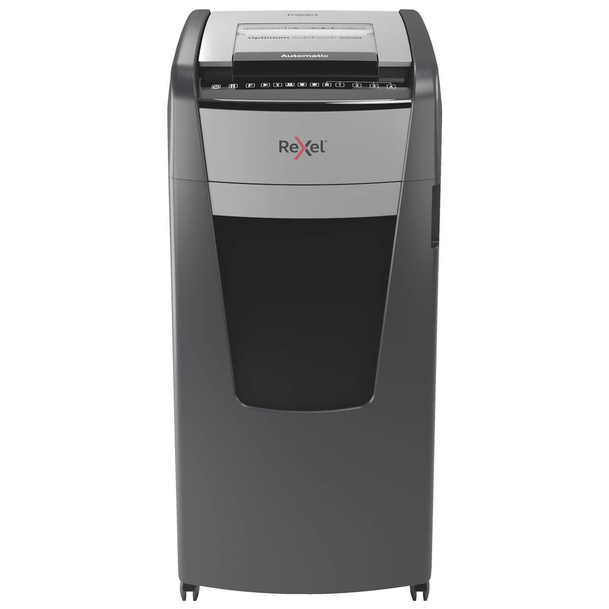 Rexel Auto+ 600M makulator - Brug 98% mindre tid på makulering, spar tid og penge med Rexel Auto Feed makulatorer. Denne auto feed makuleringsmaskine til store kontorer er ideel til 10-20 brugere og makulerer op til 600 ark (80g) automatisk på en gang. Læg stakken af papirer ind i magasinet i toppen af maskinen, og makuleringen udføres automatisk, uden at du står og indfører papirer manuelt i maskinen samt fjerner hæfteklammer og papirclips. PIN kode lås sikrer makuleringsprocessen. Papirer, kreditkort og CD'ere/DVD'ere kan også indføres manuelt. Rexel Auto+ 600M er en meget effektiv højsikkerheds- mikromakuleringsmaskine med partikkelstørrelse 2x15 mm, sikkerhedsniveau P-5 og beholder på 80 liter. Jam Free teknologi og selv olierende system giver problemfri brug. Power save funktion reducerer strømforbruget. Lavt lydniveau, 54dB.