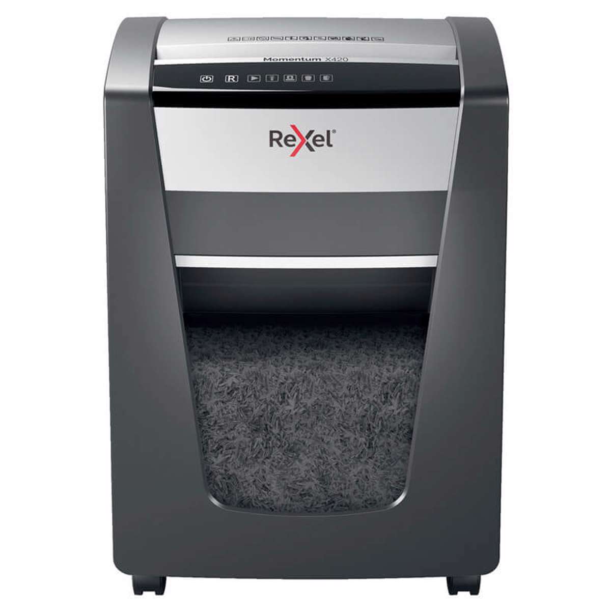 Kraften til at makulere mere! Rexel Momentum X420 makuleringsmaskine makulerer op til 20 ark på en gang med hele 4 timers konstant makuleringstid. Ideel til mindre kontorer. X420 er med antiblokeringsteknologi, der garanterer uafbrudt makulering. P4, krydsmakulering i 4x40 mm stykker. Stille med intuitive touch kontrolknapper, der giver enkel betjening. Med 30 liter beholder med 275 A4 ark kapacitet.