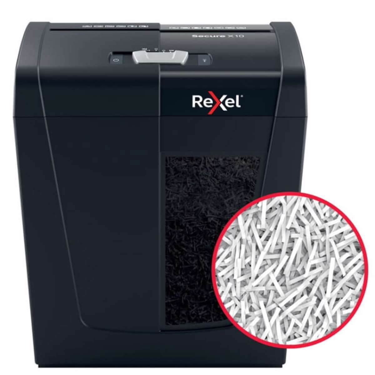 Rexel Secure X10 makulator makulerer op til 10 stk A4-ark på én gang. En ideel makuleringsmaskine til hjemmet på grund af sin kompakte og praktiske størrelse. P-4 DIN sikkerhedsniveau krydsmakuleringsstykker.