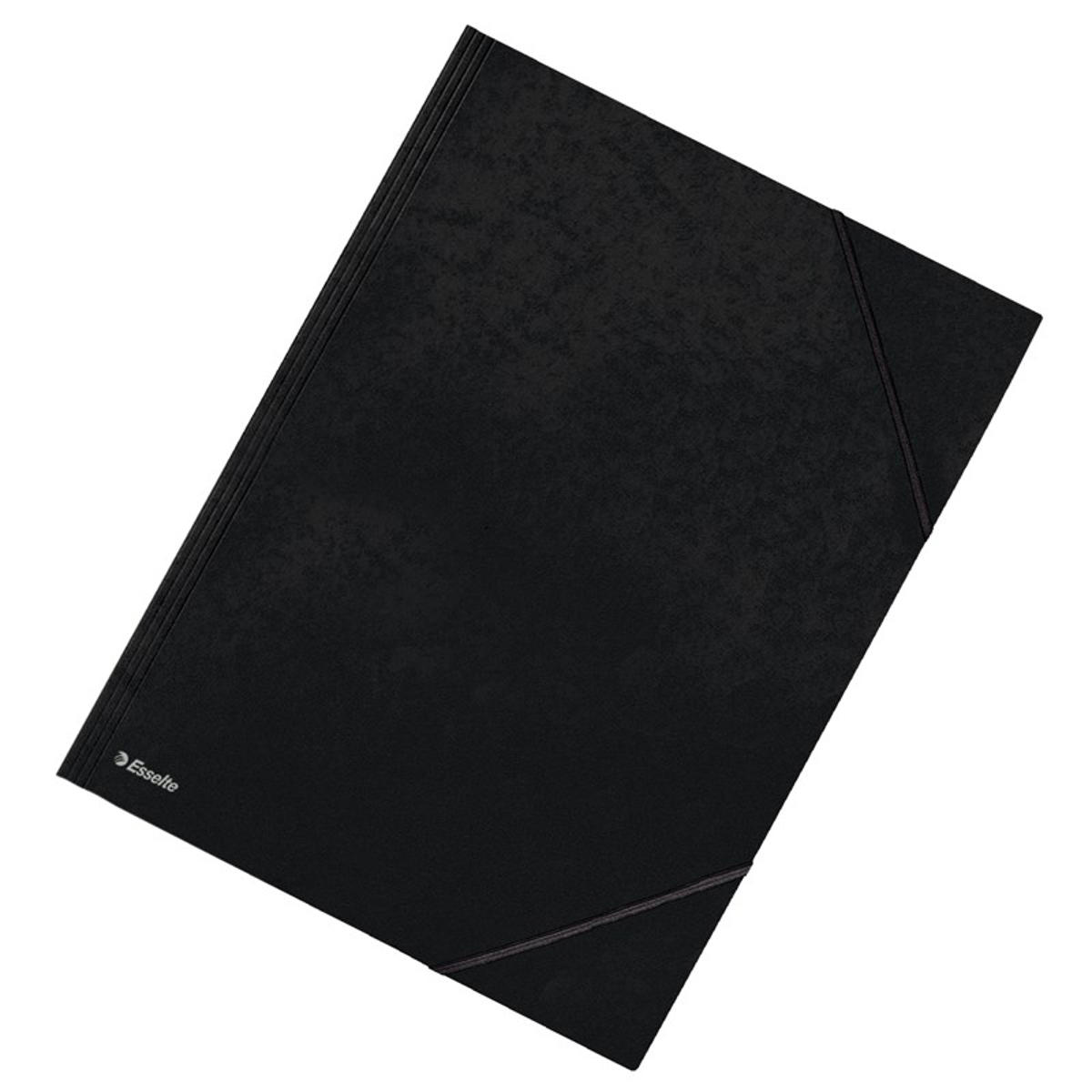 Praktisk 3 klap elastikmappe i A3 format og sort farve til smart organisering af dokumenter. Hurtig og nem løsning til at bære og sortere større dokumenter på kontoret, i skolen og på farten. Elastikmappen er produceret i kraftig 100 % nyfiber karton, der er FSC certificeret. De tre indvendige klapper, der holder dine papirer pænt organiserede. Elastiklukningen sikrer, at mappen forbliver lukket, og at dine dokumenter er beskyttet under transport.