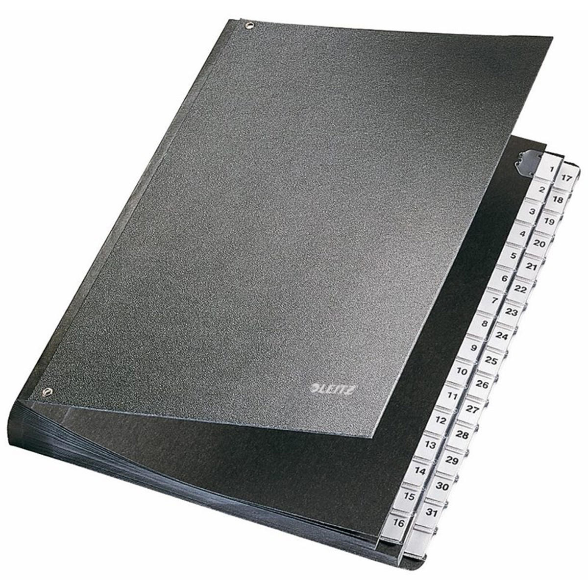 Funktionel og robust sorteringsmappe med omslag af hårdt kraftig genbrugskarton, indvendige rum og ekspanderbar ryg. 31 holdbare faneblade i folie - én for hver dag i måneden. Smarte huller i bladene gør det let at checke indholdet. Anvendelig til organisering af dokumenter og registrering, og derfor velegnet til f.eks. hoteller, restauranter og hospitaler. Mappen er fremstillet i 100% genbrugsmaterialer og FSC-certificeret.