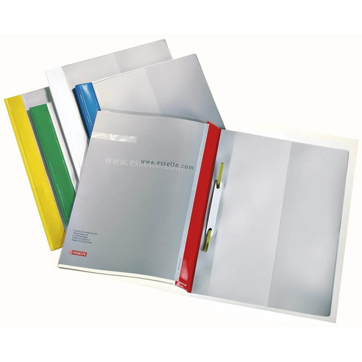 Hold dine hullede dokumenter sikre, organiserede og præsentable med tilbudsmappen med forside fra Esselte. Denne alsidige mappe er designet til at opfylde alle dine behov for arkivering, beskyttelse og præsentation. Tilbudsmappen har en dobbelt forside, der giver dig mulighed for at tilføje din egen personlige forside og skabe et professionelt indtryk samt en smal vertikal lomme på indersiden af mappens ryg til f.eks. noter, visitkort eller løse papirer. Den robuste metalmekanisme holder dine dokumenter sikkert på plads og er nem at åbne og lukke. Metalmekanismens to ben og plastik overliggeren giver ekstra støtte og forhindrer, at dine dokumenter bøjer eller krøller, så du kan være sikker på, at dine papirer ser pæne og præsentable ud, selv når mappen er fyldt. Omslaget er lavet af et klart, ikke-reflekterende materiale, så du kan se den første side af dokumentet uden at fjerne det fra mappen. Den lange labelstribe giver dig plads til at skrive en detaljeret beskrivelse af indholdet i mappen, så du nemt kan finde det, du leder efter, og fingerhullerne i toppen og bunden af labelstriben gør det nemt at flytte etiketten, hvis du har brug for det.