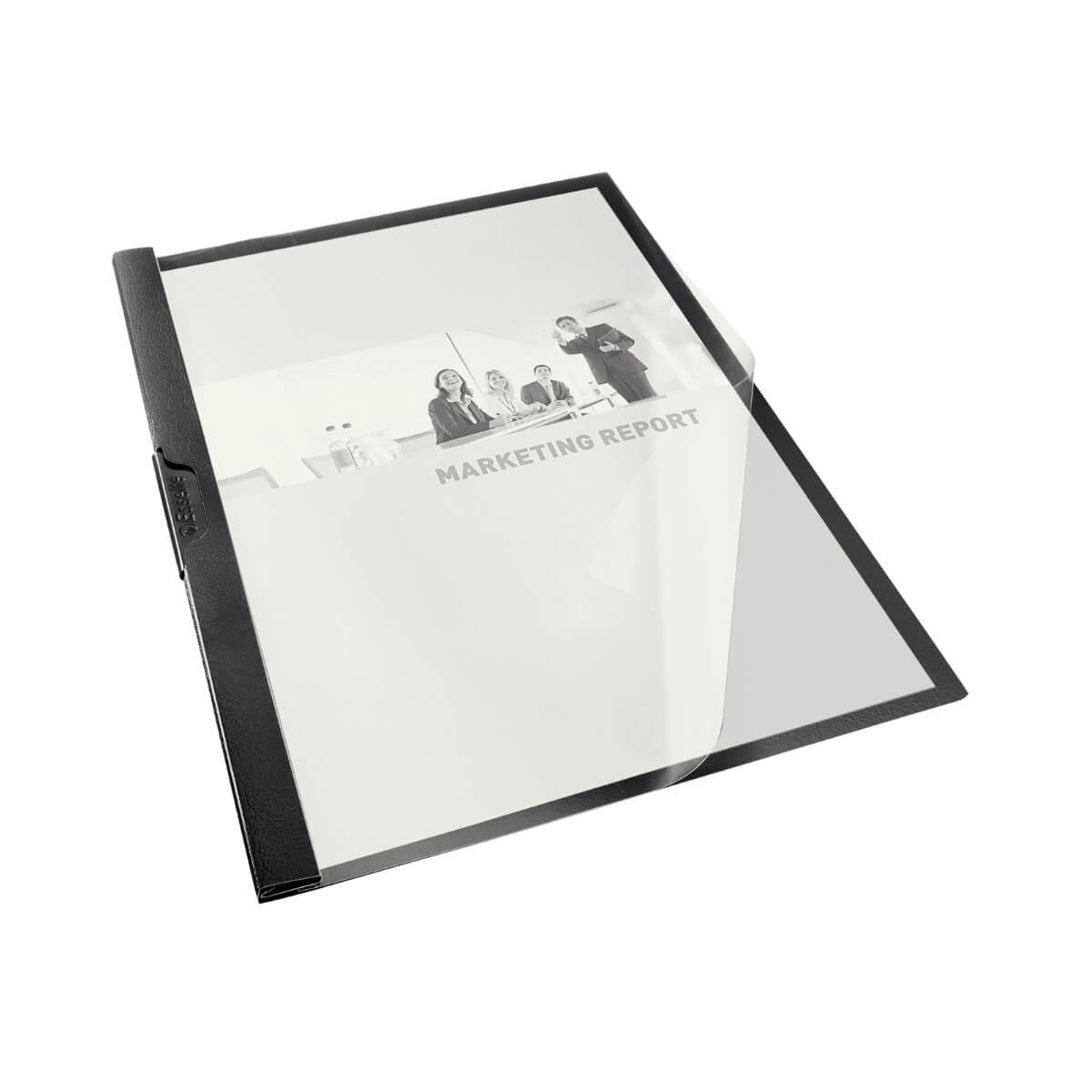 Denne Esselte præsentationsmappe er mere end bare en almindelig mappe - det er et alsidigt værktøj til præsentation og opbevaring af dine A4-dokumenter. Med sin robuste konstruktion, klare forside og effektive metalklemme er den perfekt til at holde dine papirer pæne, organiserede og præsentable. Den kraftige metalklemme holder dine dokumenter sikkert på plads, uanset om du bruger mappen til at præsentere eller opbevare dem. Du behøver ikke bekymre dig om, at dine papirer falder ud eller bliver beskadiget, ligesom at mappen kan rumme op til 30 ark A4-papir, hvilket giver dig rigelig plads til dine dokumenter.