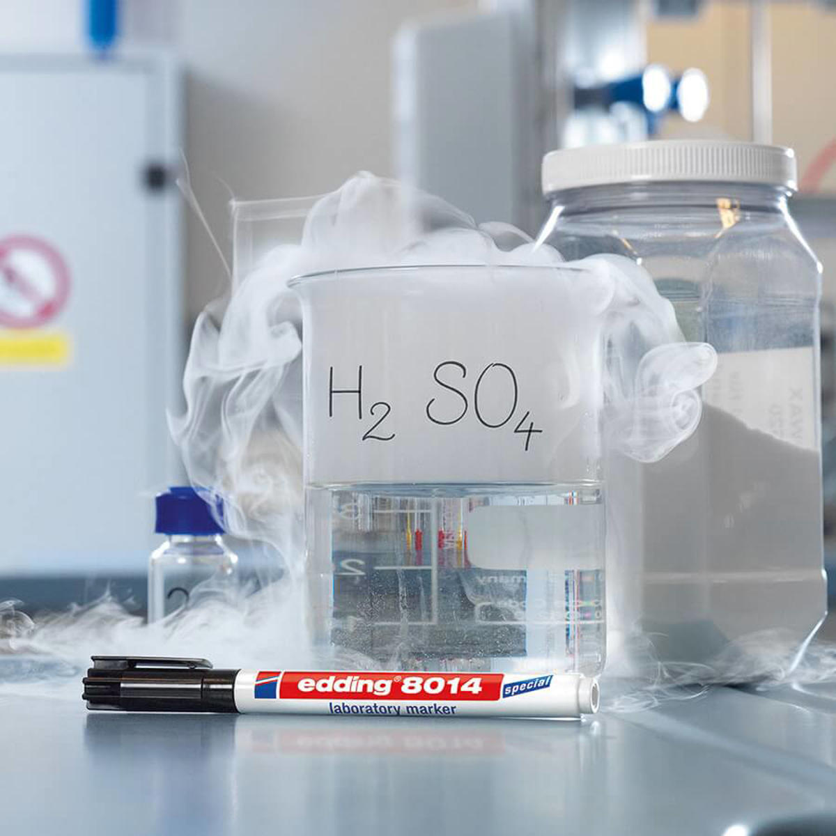 Uanset om det er på etiketter, laboratorieudstyr, reaktionskar eller mikroskopobjektglas lavet af glas eller plast, er skrivning og mærkning en del af den daglige rutine i alle slags laboratorier. Uanset om det er til medicinske eller industrielle formål, er standarden for mærkning, der kræves af laboratorier, meget høj og kræver produkter af høj kvalitet. De nye markører udviklet af edding har præcis de egenskaber, der kræves: den vindende funktion af edding 8014 og 8015F laboratoriepenne er det permanente blæk, der ikke smitter af på glatte, transparente materialer som glas eller plast. Desuden er det lugtfri blæk også vandtæt, falmer ikke og er helt smudsafvisende efter kun tre sekunder. Mærkning kan fjernes fra glasoverflader senere ved hjælp af konventionelle opløsningsmidler, uden at efterlade rester.