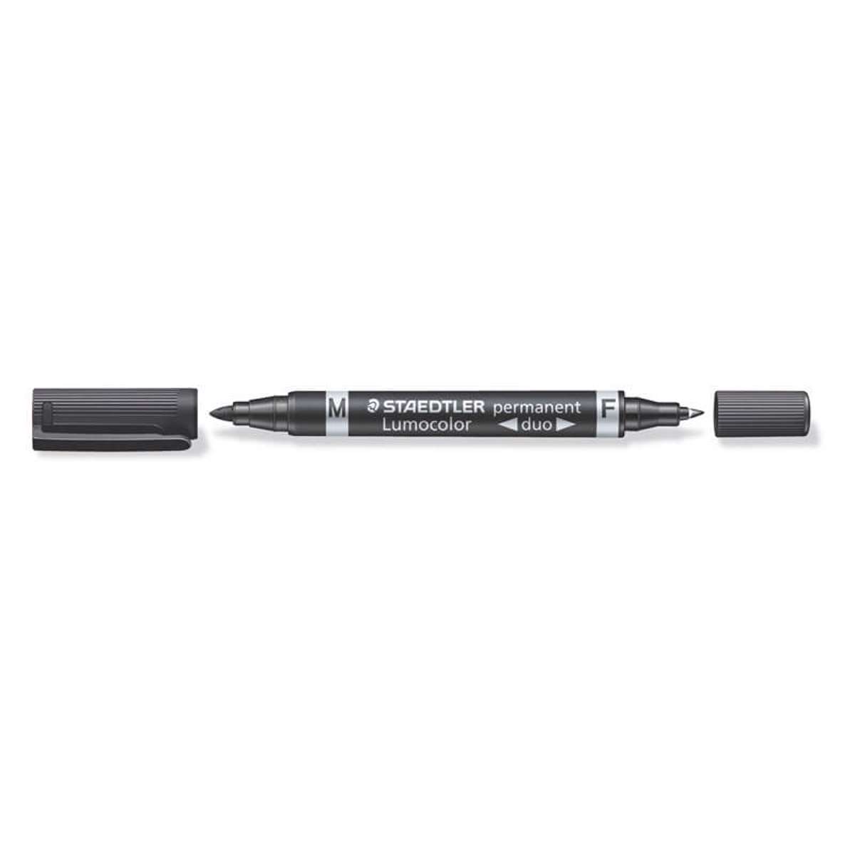 Lumocolor Duo permanent marker 348 F/M, Sort, med to spidser F 0,6 mm og M 1,5 mm 10 stk./pk.