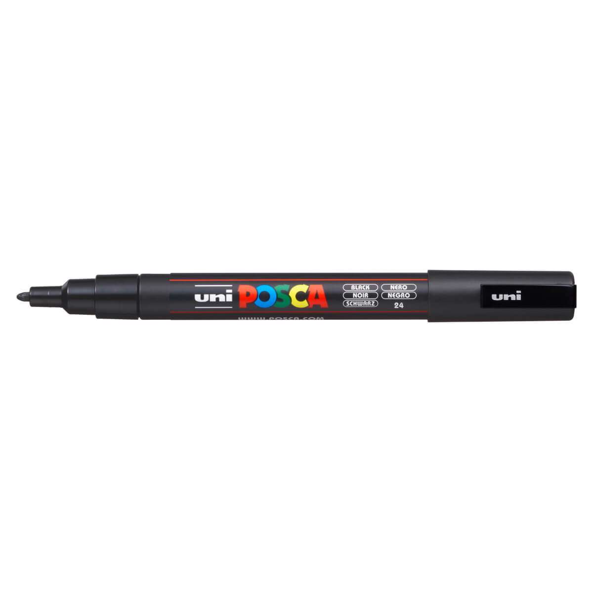 Vandbaseret paintmarker til brug på de fleste materialer. Posca er en giftfri marker uden alkohol og opløsningsmidler. Posca PC-3M har en spids, der kan vendes, når den er slidt. Posca PC-3Ms fine runde spids er designet til specialister. Pennen kan bruges til at tilpasse, skabe, dekorere eller markere alt, der inspirerer dig, i en ensartet streg. Pennen skal rystes kraftigt, så kuglen får lov at blande farven, med påsat hætte hver gang, du skal bruge den. Kun fantasien sætter grænser for brugen af Posca. Spidsen kan renses med vand. Hvis du har lavet en fejl, eller ønsker at ændre udseende på dit arbejde, maler du blot over med den nye farve, så let er det. Posca er den ultimative pen til dit kreative arbejde. Besøg www.posca.com og se en bred vifte af kreative workshops, som du kan downloade og arbejde ud fra. Posca er permanent på papir og pap. Hvis du ønsker et holdbart resultat på terracotta, træ, sten, metal, porcelæn, plastik og glas anbefales det at spraye med en klar lak. For holdbart resultat på stof, stryges der på bagsiden af stoffet. Posca kan fjernes på glas og andre glatte overflader med en våd klud også på glastavler. Farvelæg dine blade, bark, borde, bænke, blokke, breve og alt det andet du gerne vil have frisket op.