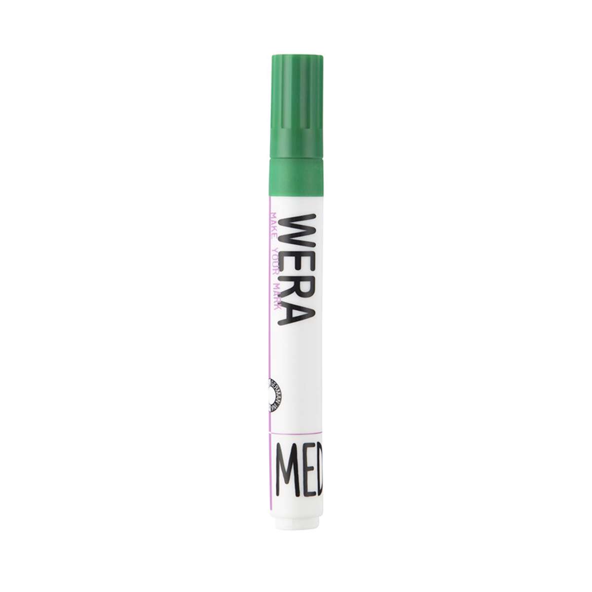 WERA permanente markører er vandtætte og alkoholbaserede. Vælg mellem kegleformet, rund eller skrå blonde i forskellige størrelser. De fleste modeller fås i de fire basisfarver. WERA tusch hæfter på næsten alle materialer og fungerer selvfølgelig også godt på papir og pap. Serien indeholder også tavlepenne. WERA - sæt dit præg!