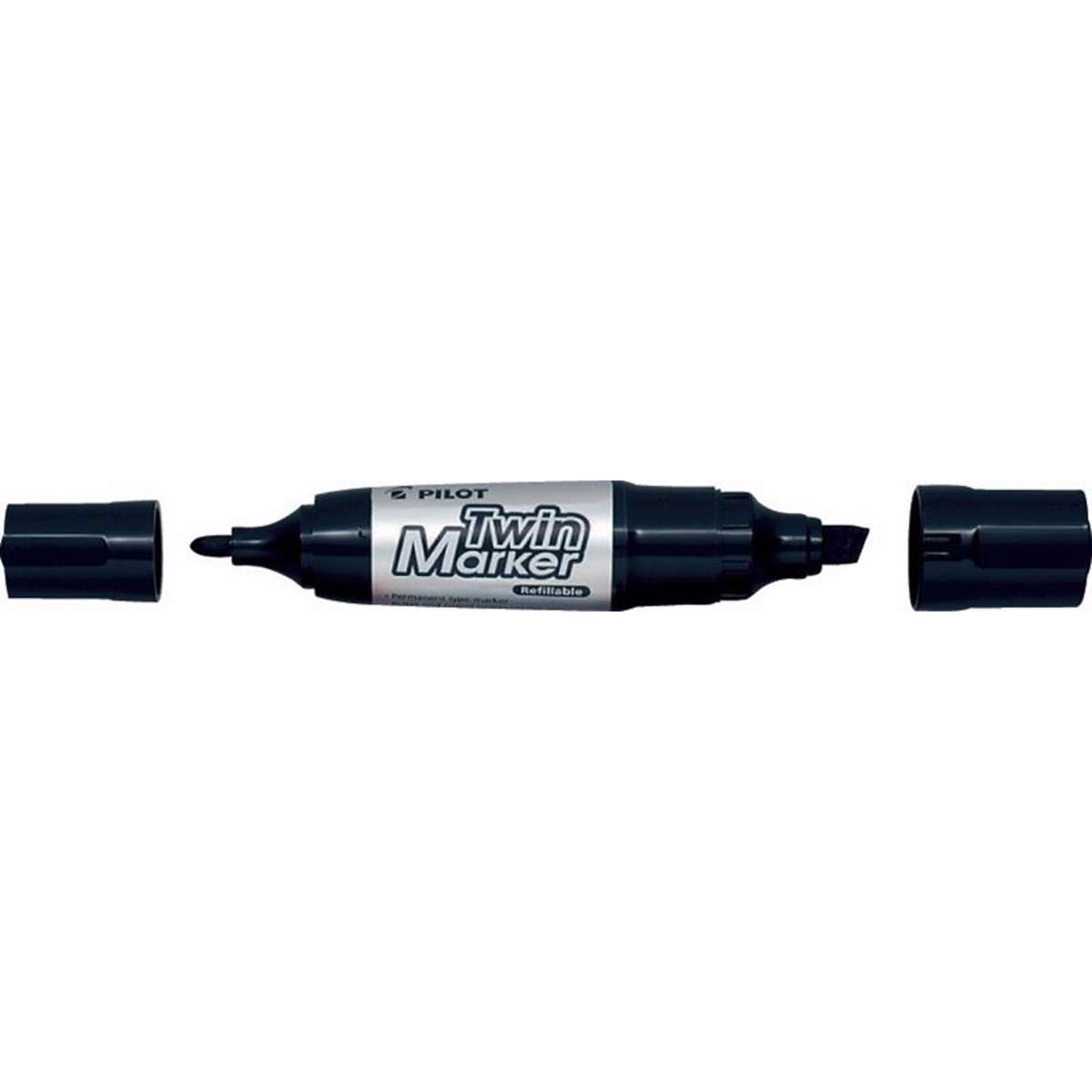 TWIN marker Jumbo fra Pilot er permanent marker med praktisk dobbeltspids, der giver mulighed for to spidser (medium og bred). Blækket er hurtigttørrende, vandfast og falmer ikke. Det er fri for giftige opløsningsstoffer. Som en del af Pilots Begreen serie er markeren fremstillet af 82,6 % genanvendt plastik. Fås også i en slankere udgave med fin og ekstrafin spids.