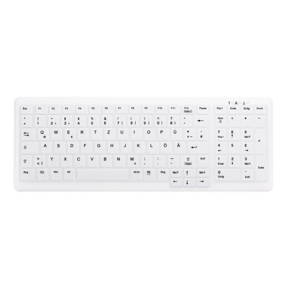 Tastatur Active AK-C7000 Hygiejnisk hvid, Nordisk, er et medicinsk PC-tastatur i høj kvalitet, udviklet til intensiv brug i hygiejnesensitive miljøer som hospitaler, klinikker, mikrobiologiske laboratorier og industrielle områder med høje renhedskrav. Tastaturet er designet til at være både driftssikkert og behageligt at skrive på, så det egner sig særligt godt til brugere, der taster meget i løbet af dagen.