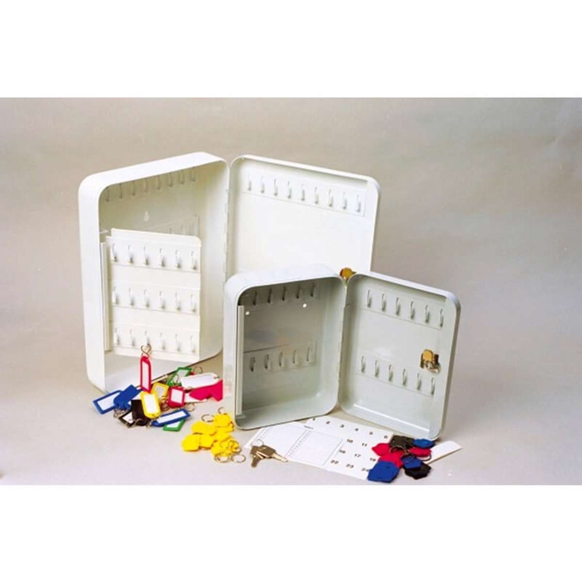 Nøgleboks fremstillet af stål med cylinderlås - hvid - til 20 nøgler