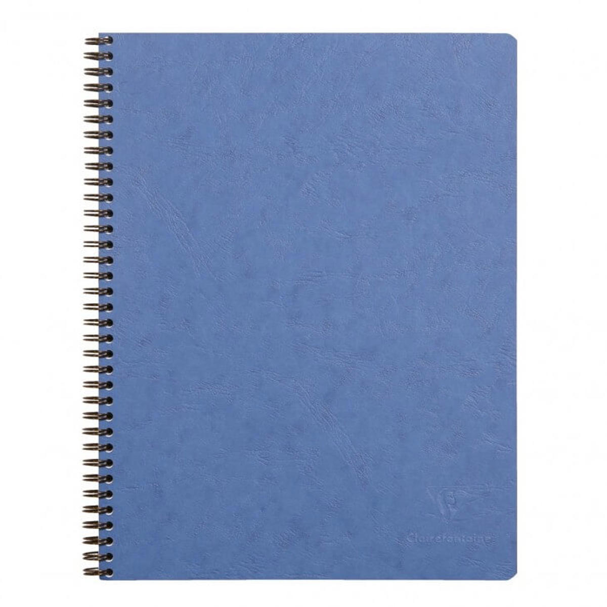 Clairefontaine Age Bag - Virkelig lækker og smuk kvalitets spiralnotesbog eller kollegieblok med dobbeltspiral, A5 50 ark, linjeret, blåt læderpræget omslag.