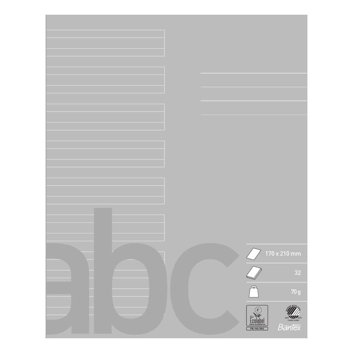 Skolehæfte, Bantex, 17 cm x 21 cm, Linieret 5 mm + 7mm + 5 mm, Grå - Svanemærket & EU-Ecolabel