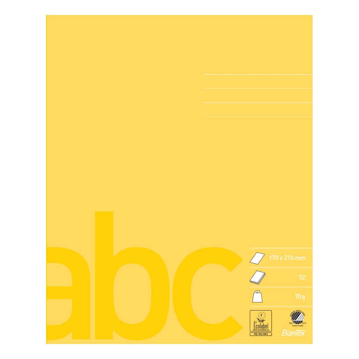 Skolehæfte, Bantex, 17 cm x 21 cm, Ulinieret, Gul - Svanemærket & EU-Ecolabel
