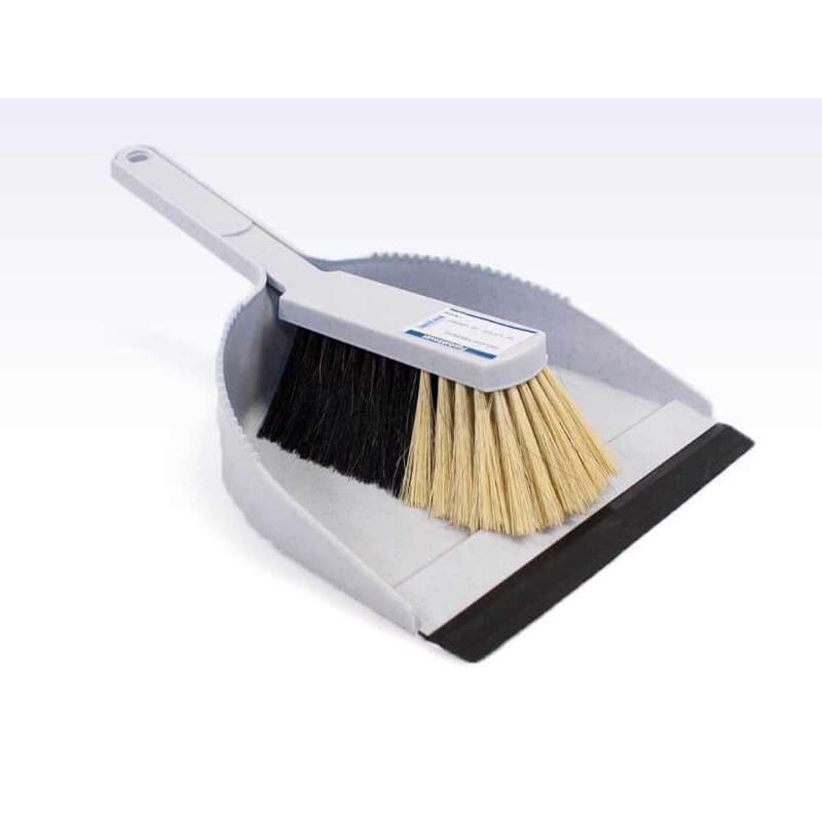 Fejebakkesæt i plast med gummikant og med tilhørende støvkost.