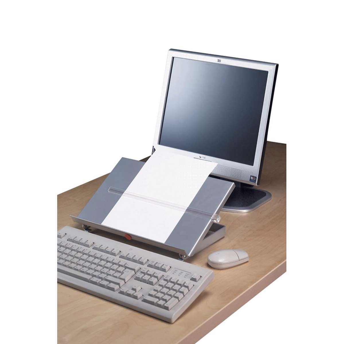 Med magnetlineal. Til rigtig synsafstand og synsvinkel. Stærk og stabil, kan bære et ringbind. Læsepladen har målene: 240x375mm