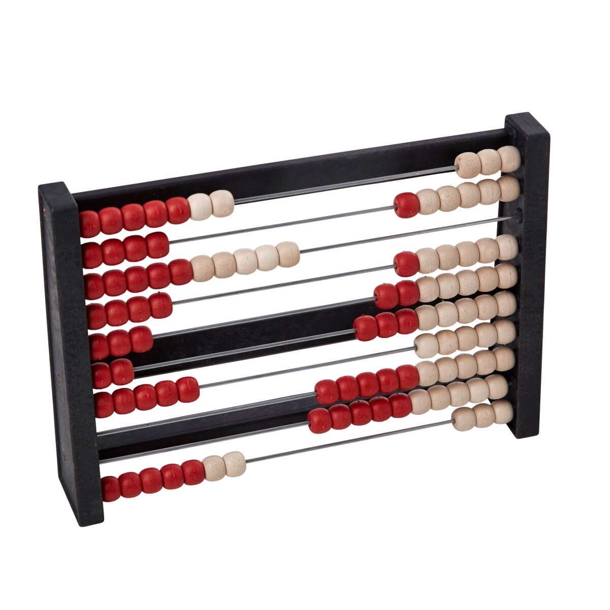 Solid og stabil kugleramme i genanvendt træ med sort ramme og 100 kugler i røde og hvide farver. Velegnet til brug i institution og skole. Kuglerammen måler 25 cm x 17 cm x 4,5 cm.