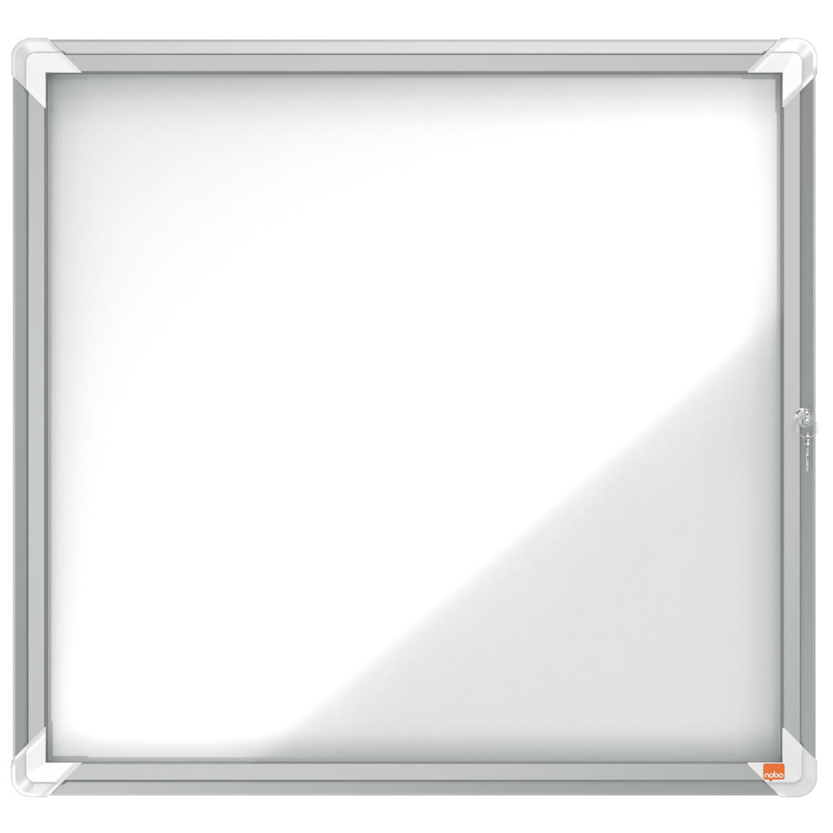 - Udendørs vejrbestandigt låsbart opslagsskab med hængslet låge i sikkerhedsglas og med sidelås