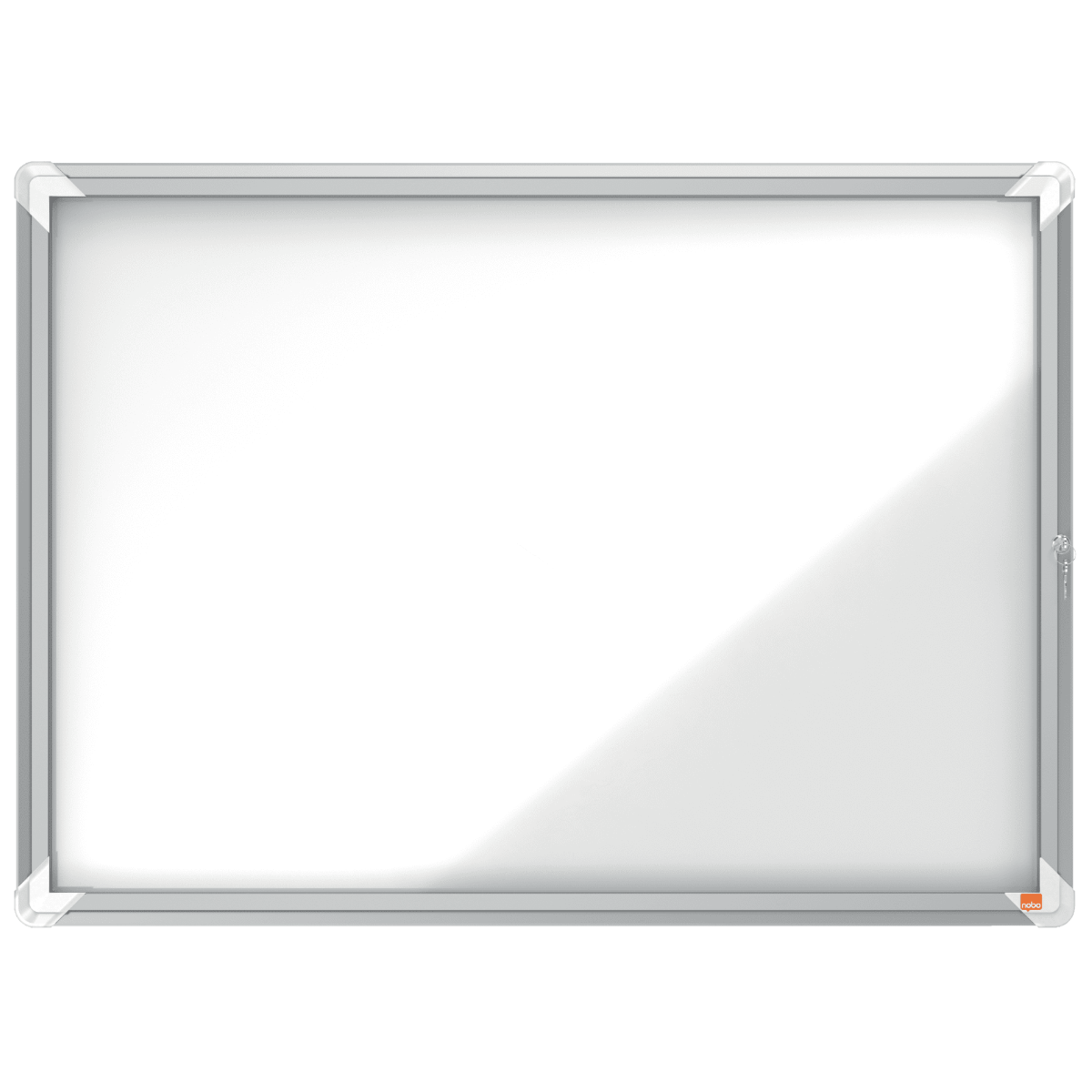 Magnetisk og låsbart opslagsskab til indendørs brug, med hængslet glaslåge og med sidelås. Komplet med moderne, stilfuld aluminiumsramme og vægmonteres gennem hjørnerne. Magnetisk opslagstavle-overflade til sikkert at vise dine opslag. Størrelse: 8xA4 ark.
