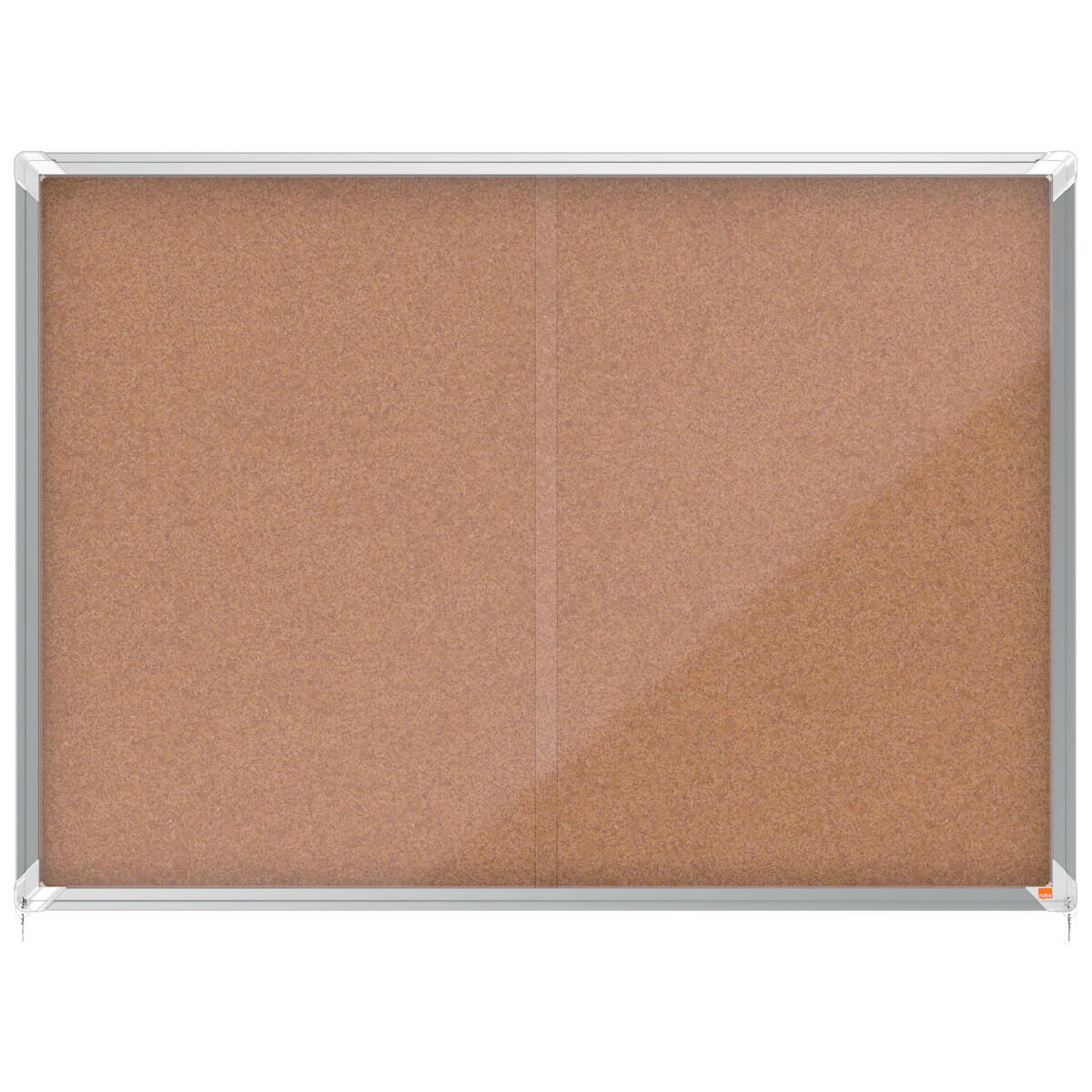Låsbart opslagsskab i kork, til indendørs brug, med skydelåge og integreret hjørnelås. Komplet med moderne, stilfuld aluminiumsramme og vægmonteres gennem hjørnerne. Opslagstavle med kork overflade til sikkert at sætte dine noter på med kortnåle. Størrelse: 18xA4 ark.