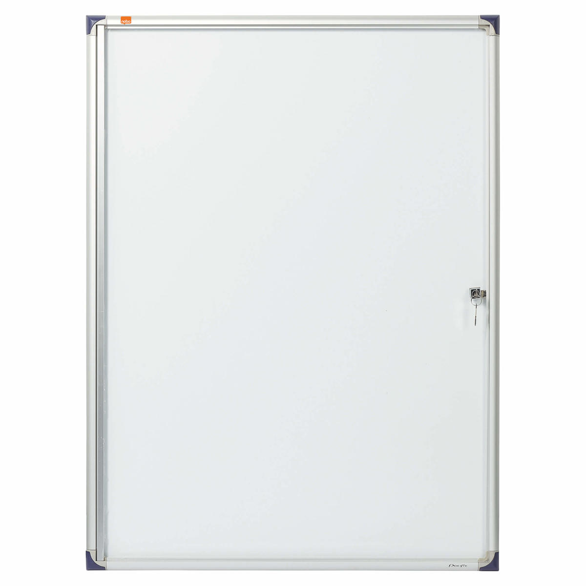 Slimline opslagsskab i ekstra fladt glas der kan låses, til indendørs brug. Ideelt i korridorer og gange, hvor pladsen er trang. Hvid drywipe overflade, der kan skrives på eller hæng sedler op på ved brug af magneter. Designet til sikker visning af 9XA4 dokumenter. Leveres med vægbeslag. Opslagsskabet kan monteres både på højkant (enten med låge venstrehængt eller højrehængt) eller i tværformat - alt efter behov. Størrelse: 9XA4 ark.